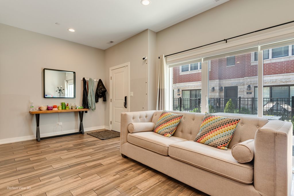 Stunning, like-new 3-bedroom, 2.5-bathroom townhome offering modern design, quality finishes, and exceptional convenience in the heart of Chicago. This residence features an attached 2-car garage with EV charger and multiple private outdoor spaces, combining comfort, style, and functionality. The main level offers a spacious recreation room that opens directly to a private fenced patio (19' x 14'), ideal for entertaining or relaxing. The first floor showcases a bright, open-concept layout with abundant natural light, a contemporary kitchen with quartz countertops, custom cabinetry, stainless steel appliances, and a large living room. Rich hardwood floors flow throughout, and a private balcony extends the living space outdoors. The upper level includes three generously sized bedrooms and 2 full bathrooms, providing comfort and retreat. Every detail has been thoughtfully designed with modern finishes and high-quality craftsmanship. Perfectly located just 10 minutes from Chinatown and near premier shopping, dining, and transit, this home offers the best of city living with sophisticated design, modern amenities, and exceptional convenience.