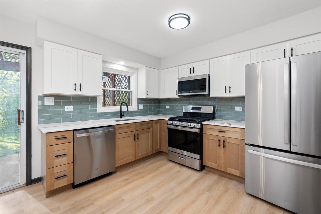Welcome to 8040 Geneva St, this renovated ranch is awaiting you. Step inside and you are greeted by the vaulted ceilings, tons of natural light and easy living. Your kitchen has two tone cabinets, quartz countertops and subway tile backsplash. 3 bedrooms with plenty of closet space and a full bathroom with herringbone accent wall. Corner lot with plenty of yard space, a patio right off the kitchen and 2 car attached garage. This one is move in ready! Come take a look today!