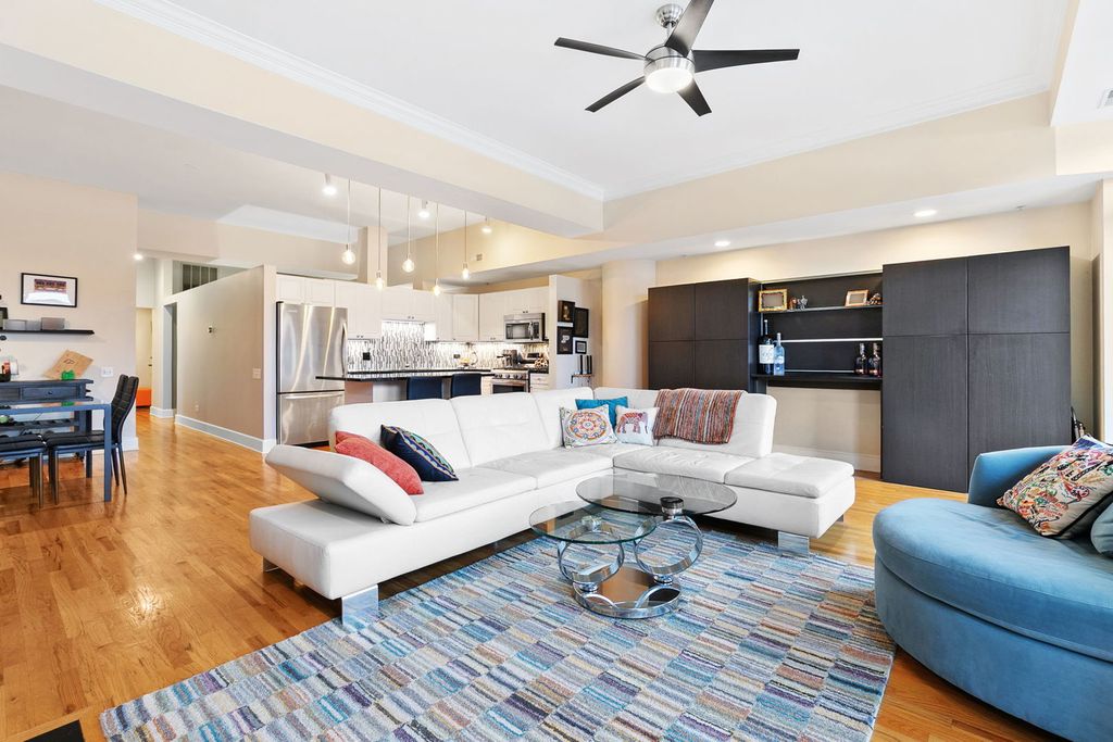 This beautifully renovated 1 bed, 1 bath loft lives like a two-bedroom thanks to a unique bonus room-perfect for an office or guest space. Sunlight pours in through soaring crown-molded ceilings, highlighting the hardwood floors, cozy gas fireplace, and custom built-in cabinetry in the living room. The chef's kitchen boasts upgraded stainless steel appliances, custom light fixture, granite countertops, and a matching backsplash. The oversized primary bedroom offers exceptional closet space, while the spa-like bath features a quartz double vanity, soaking tub, and separate walk-in shower. Enjoy your own private balcony, in-unit front-loading washer/dryer, and central heat/air. Full-amenity building with fitness center, 24-hour door staff, on-site management, maintenance, and package receiving. Monthly assessment includes cable TV and wifi. Premier interior garage parking (P38) available for $30,000.