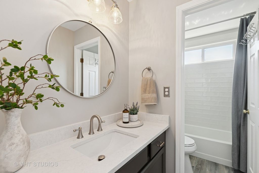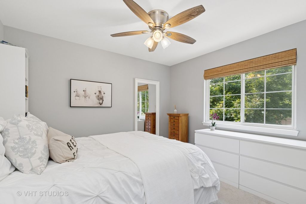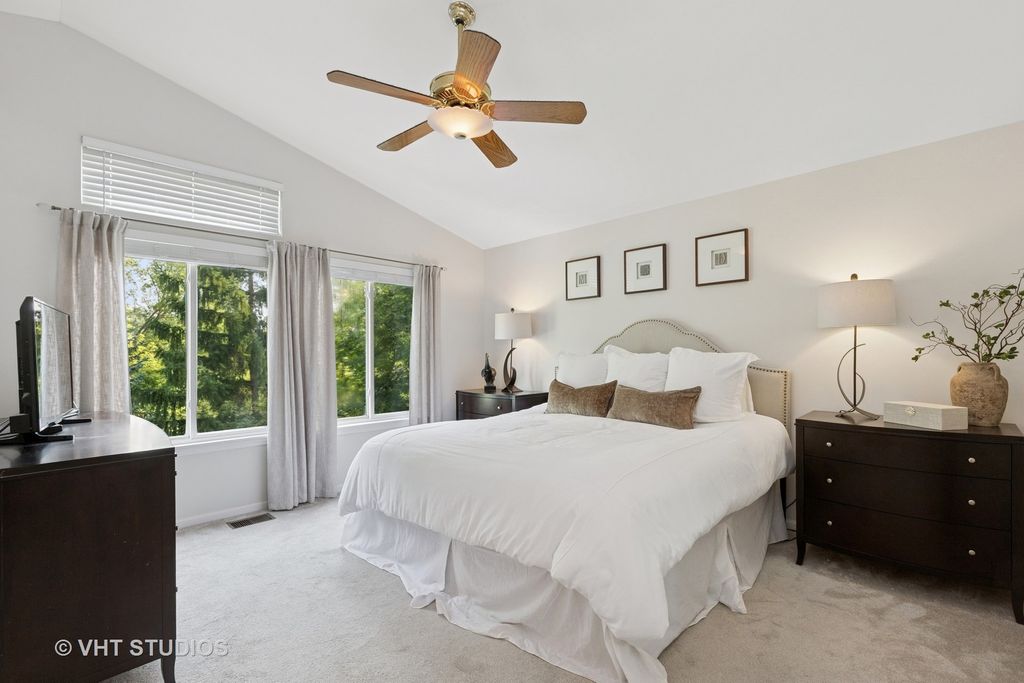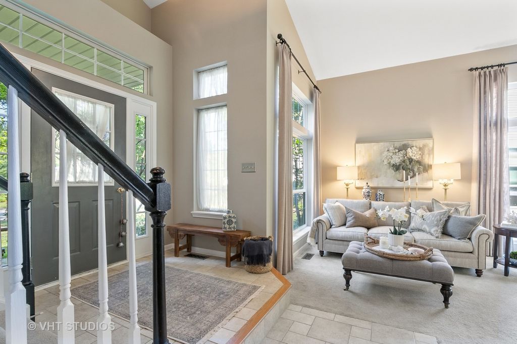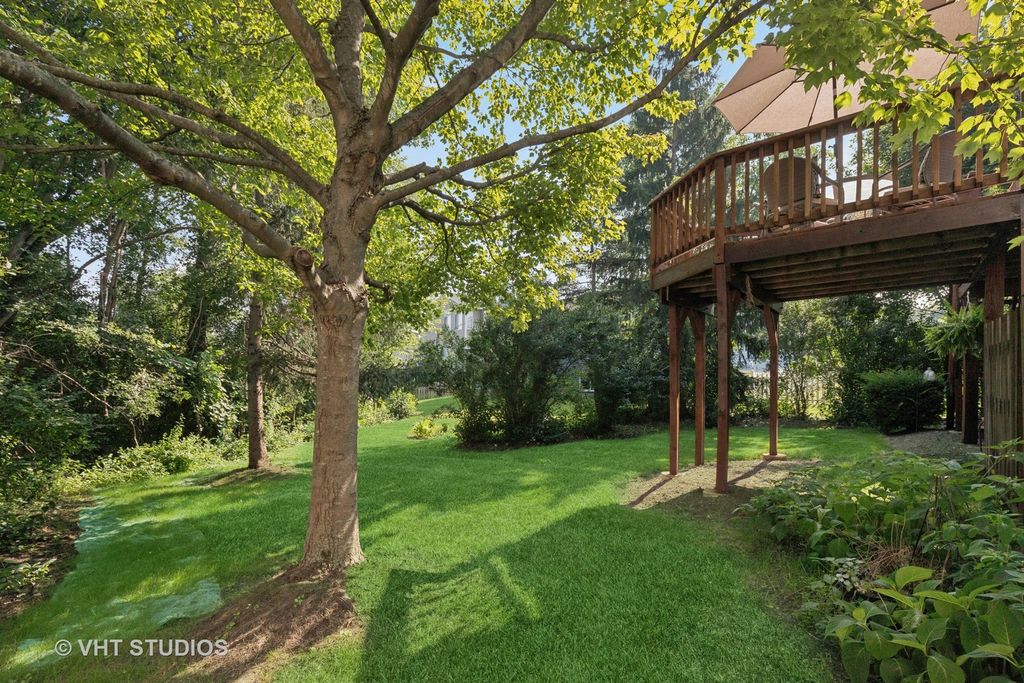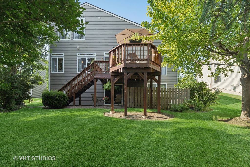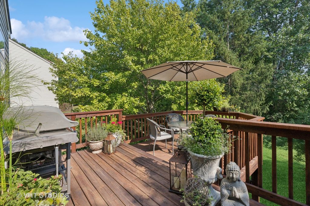Straight from the pages of a magazine, this beautifully updated 4-bedroom home offers timeless appeal and modern comfort. Nestled in a quiet cul-de-sac, the setting is truly special-surrounded by mature trees that provide privacy and a peaceful backdrop for relaxing on your two-tier deck and enjoying the professionally landscaped yard. Step inside to a dramatic two-story foyer that opens to elegant living and dining rooms, both featuring soaring vaulted ceilings. The updated kitchen is a chef's delight, complete with quartz countertops, a striking backsplash, stainless steel appliances, breakfast bar, and pantry. The adjacent family room is warm and inviting with custom built-ins and a sleek, ready-to-use electric fireplace. Upstairs, you'll find four spacious bedrooms, including a luxurious primary suite with a renovated spa-like bathroom and walk-in closet. Three additional bedrooms share an updated full bath. The walkout basement is filled with natural light and offers endless potential-finish it to include an additional bedroom, recreation room, or anything you can imagine! Recent updates include: roof (2016), Hardie Plank fiber cement siding (2017), A/C (2012), and driveway (2022). This is a home you truly must see to appreciate!