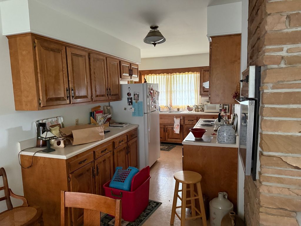 Cozy and full of potential, this 2-bedroom, 1-bath ranch is ready for its next chapter. The living room welcomes you with a fireplace for those chilly nights, while both bedrooms feature beautiful hardwood floors. The kitchen flows easily into the main living space, and you'll stay comfortable year-round with central air and a forced-air furnace. Downstairs, you'll find a partially finished basement with a second fireplace, plenty of room for a rec area, and space to set up a kitchenette - perfect for entertaining or extra living space. The home also includes a 1-stall attached garage for convenience. Being sold 'AS IS'.