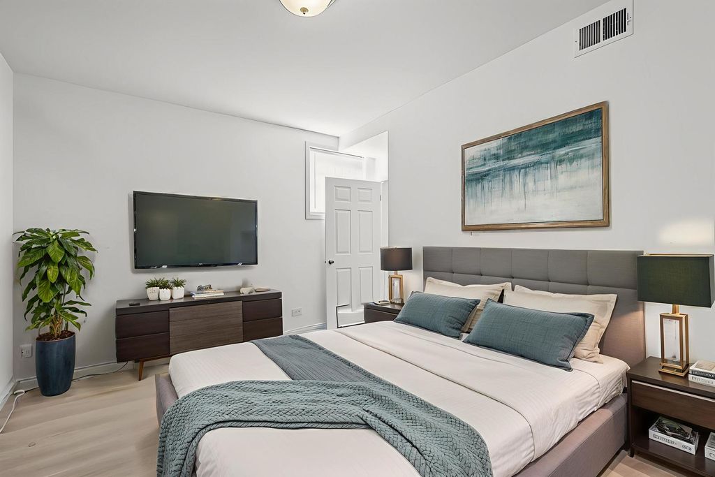 Spacious two-bedroom, two-bath, updated condo in the Tri-Taylor/Illinois Medical District neighborhood. 2023 updates include: new laminate floors, kitchen countertops, fully retiled bathrooms & accessories, new washer, dishwasher, fridge, furnace, and automated keypad entry. The open layout features a living room with a fireplace, a kitchen with a breakfast bar, and plenty of cabinets for ample storage. The primary suite offers a large room with a jacuzzi-style tub and double vanity in the ensuite bathroom, complemented by a second bedroom and full bath-perfect for guests, a home office, or flexible living. The in-unit laundry and included parking space add even more value, and east-west exposures provide natural light and ventilation, keeping the home bright and airy throughout the day. Just blocks from UIC, Rush, and Cook County hospitals, and minutes from the Blue Line and major expressways, this home blends neighborhood charm with unmatched city connectivity. Parks, local shops, and cafes are close by, and larger projects already reshaping the West Side-new housing, retail, and green space around the United Center and along Western Avenue-signal a strong trajectory for growth and investment. A unique opportunity to live like you truly deserve or invest in a neighborhood whose future is full of momentum.