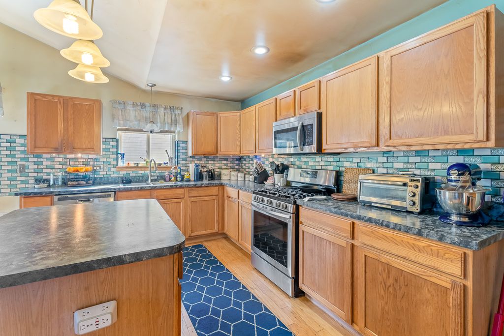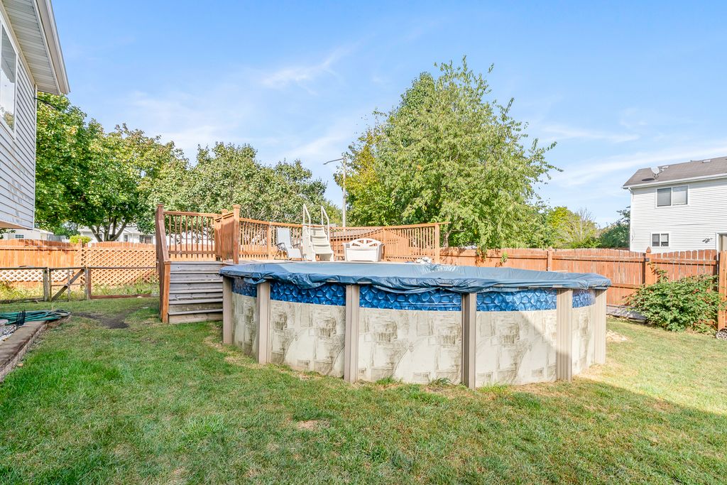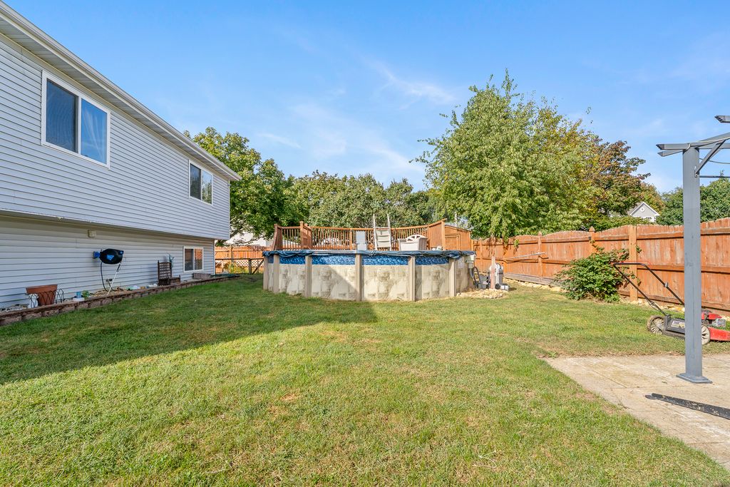 Charming Split-Level with Pool & Outdoor Oasis! Discover this delightful 4-bedroom, 2-bath split-level home offering approximately 2,100 sq ft of comfortable living space. The bright, open floor plan seamlessly connects the living and dining areas to a spacious kitchen has loads of cabinet & counter space galore, decorative backsplash, kitchen appliances remain, island are perfect for cooking, entertaining, and gathering. The primary bedroom is located on the lower level for extra privacy. The primary bath is the perfect place to unwind and relax in your jetted tub! While three additional bedrooms and a full bath are conveniently located upstairs. Outside, enjoy summer fun in your above-ground pool, and relax on the adjoining deck overlooking a fully fenced backyard ideal for pets to roam freely. Mature trees enhance the curb appeal and create a peaceful, shaded setting. Seller will provide a 1 year home warranty. Call and make your appointment today.