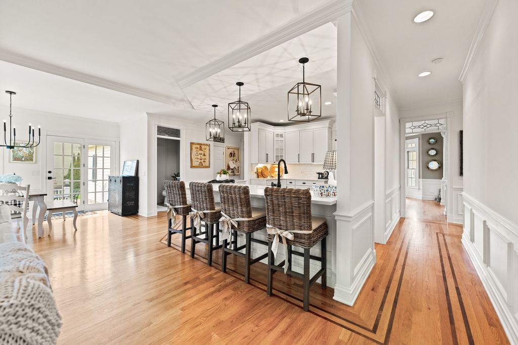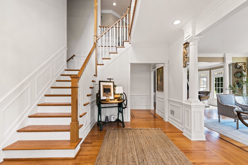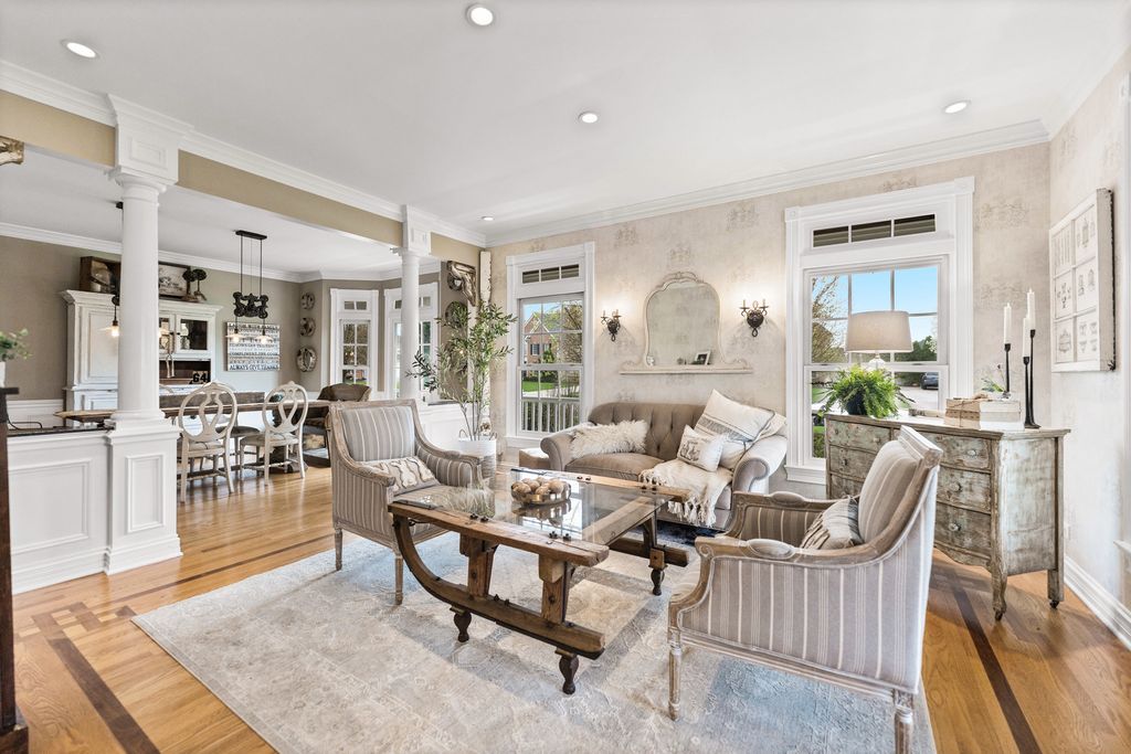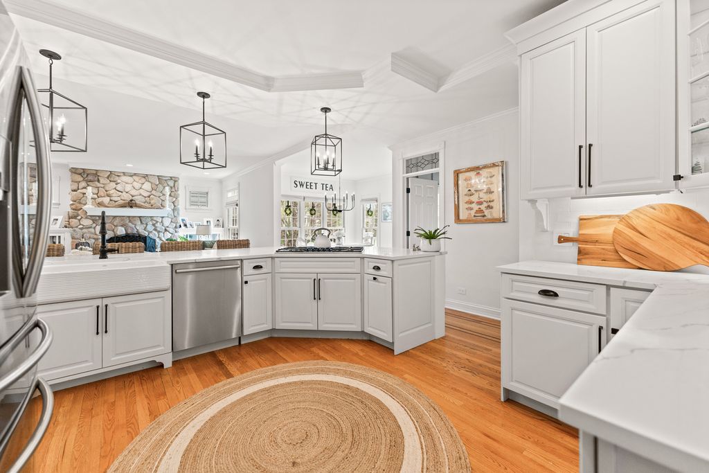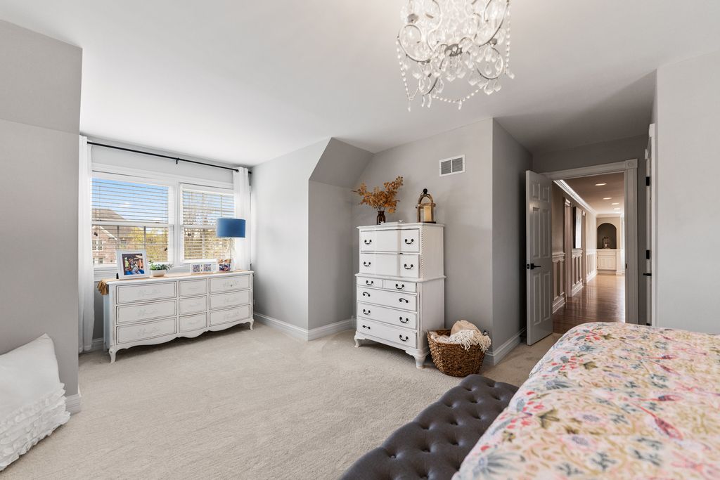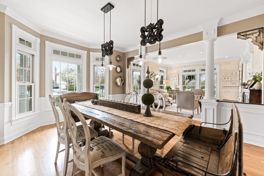 Discover luxury living located in the highly sought-after Fox Mill community in St. Charles, this beautifully updated 5-bedroom, 5.5-bathroom home is the perfect blend of timeless elegance and modern updates. Every detail has been thoughtfully designed with high-end finishes, intentional upgrades, and spaces made to impress. Situated on a beautifully landscaped lot, the home's curb appeal is undeniable. A charming wraparound porch leads into a grand foyer, where custom millwork, wainscoting, and designer lighting set the tone for the sophisticated interiors. Inside, the formal dining room is bathed in natural light from a bay window, highlighting its exquisite trim work. The formal living room showcases gorgeous wallpaper and an inviting open layout. At the heart of the home, the luxury kitchen features high-end SS appliances, custom cabinetry, designer light fixtures, and a spacious breakfast bar. The kitchen flows seamlessly into the family room with its striking stone fireplace and casual, bright dining area with direct access to the deck, brick paver patio, and screened-in porch-perfect for entertaining. The first floor also includes a private home office with custom wall details, a designer half bath, and a generous laundry/mudroom. Upstairs, timeless wainscoting lines the hallways leading to a sophisticated sitting area with a bay window. The primary suite is a true retreat, featuring a cozy fireplace, private balcony overlooking the backyard, and a stunning updated ensuite bath with intricate tile work, accent walls, and luxury finishes. Additional bedrooms and bathrooms are spacious and beautifully updated, while a versatile in-law or multipurpose suite offers skylights, detailed craftsmanship, and a private full bath. The finished English lower level expands the living space with a full, updated bath and offers endless options for recreation, fitness, or entertainment, along with abundant storage space and convenient access to the garage. Living in Fox Mill offers exceptional community amenities, including a private clubhouse, swimming pool, playgrounds, and scenic walking and biking trails. Families will appreciate the neighborhood's strong sense of community and access to top-rated District 303 schools, as well as nearby private school options and golf courses. Just minutes away, downtown St. Charles provides an incredible mix of restaurants, boutique shopping, and picturesque Fox River views, making everyday living both convenient and enjoyable. Don't miss the opportunity to own this luxury, remodeled home in Fox Mill... schedule your private tour today and experience the perfect combination of elegance, comfort, and community living.