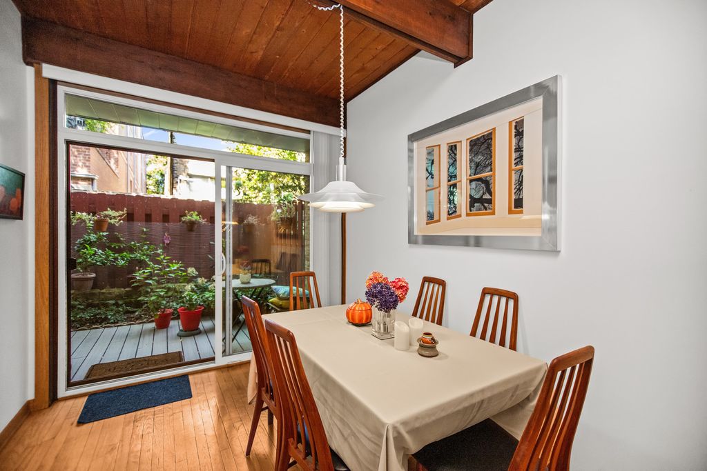 Urban living at it's finest. Updated 3 bedroom +den/family room townhome on quiet street in coveted Nettlehorst school district. Abundant natural light from floor to ceiling windows throughout. The first level features a wood burning fireplace, spacious living room/dining room combo, a nice size kitchen and sliding doors that open to a newly redone, private patio. The second level features a large bedroom, a full bathroom with walk in shower, and a family room/den. with built in bookshelves and desk .On the top floor you'll find a large primary bedroom, a third bedroom and a full, newly redone bathroom with walk in shower and a double sik granite vanity. Skylights add to more natural light, There are hardwood floors throughout, professionally organized closets and built ins add to appeal. In unit washer and dryer on second floor and one outdoor parking space included in price. Great city living within steps to Mariano's, shops, restaurants, cafes and a dog park. Easy transportation nearby. Don't miss this opportunity!