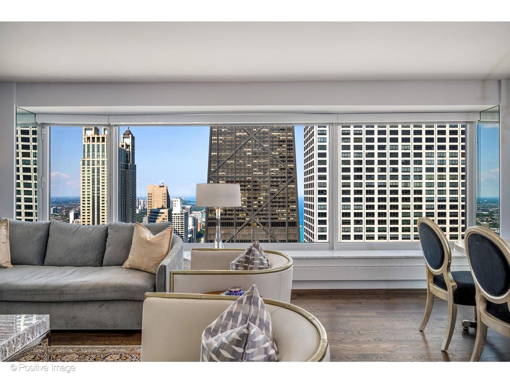 WALL OF WINDOWS with No Columns! Perched high above the city in the sought-after "A" tier, one of the most desirable floorplans in the building, this exceptional northeast corner residence offers a front-row seat to Chicago's most breathtaking panoramas. Unobstructed WALL OF WINDOWS, free from columns or interruptions, frame sweeping vistas of Lake Michigan to the east and the city skyline stretching north along Lake Shore Drive to Lincoln Park. From sunrise to sunset, the views captivate and inspire. From the moment you step inside, a grand foyer welcomes you with a spacious coat closet, a well-appointed laundry room with side-by-side washer/dryer, and a stylish powder room. Beyond, a second gallery foyer gracefully leads you to the main living spaces. The expansive living and dining rooms are bathed in natural light, highlighting gleaming hardwood floors and a state-of-the-art sound system with discreetly hidden speakers. Here, a dramatic WALL OF WINDOWS elevates the space, showcasing endless views of the brilliant blue lake and the dynamic city skyline, an ever-changing backdrop that defines the home's elegance. The gourmet kitchen, outfitted with Brookhaven cabinetry, Sub-Zero and Miele appliances, and a cozy breakfast nook, creates the perfect setting to savor your morning coffee while watching the sunrise over the lake. The versatile third bedroom, currently used as a sophisticated den with custom built-ins, flows seamlessly from the living room, while the generous second bedroom includes an ensuite bath and equally spectacular views. The primary suite is a true retreat of indulgence with abundant custom closets and dual spa-inspired baths, designed to provide both privacy and luxury. Meticulously maintained and move-in ready, this residence offers additional conveniences including same-floor storage located directly across from the unit. The building itself elevates the lifestyle experience with 24-hour door staff, a health club style indoor pool, whirlpool, sauna, steam room, party room, and on-site management. Parking is available for lease in the attached heated garage. Perfectly situated in the heart of the Magnificent Mile, adjacent to the Water Tower Place, surrounded by world-class shopping and dining, walking distance to Navy Pier, lakefront beaches, Millennium Park, the River Walk, the Opera House, theaters and museums, this is more than a home-it's a lifestyle of refinement, elegance, and unmatched views. Welcome home!