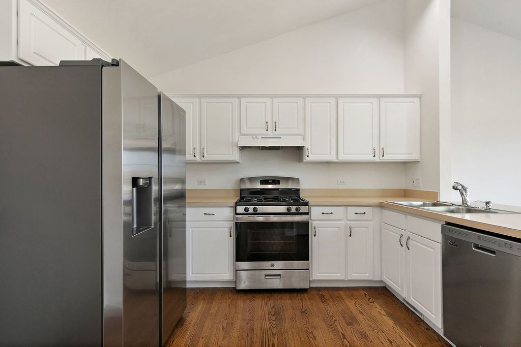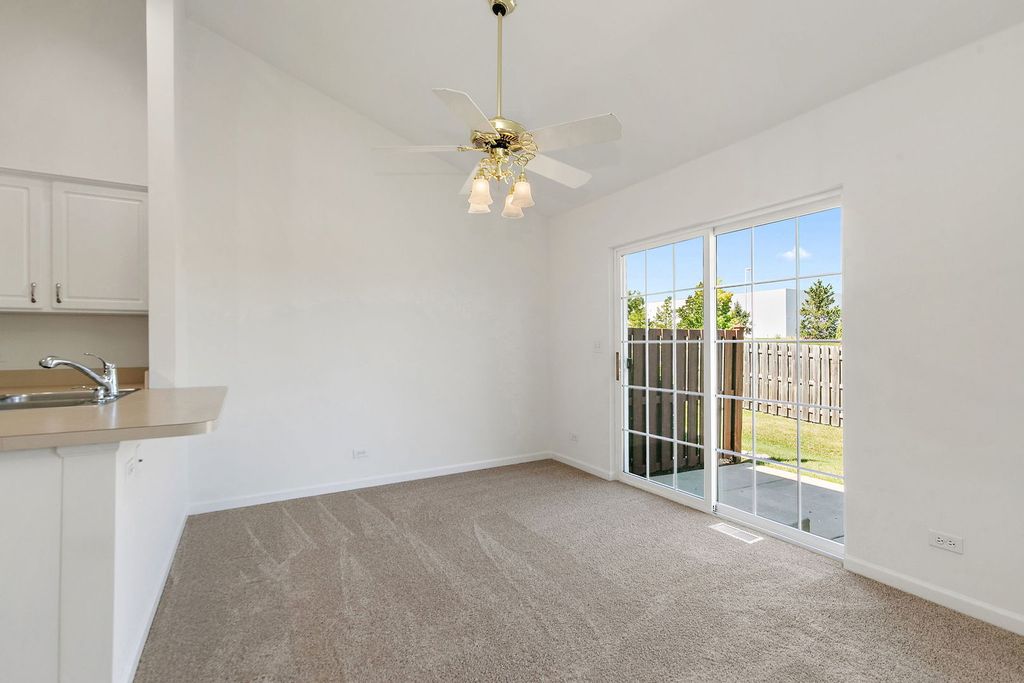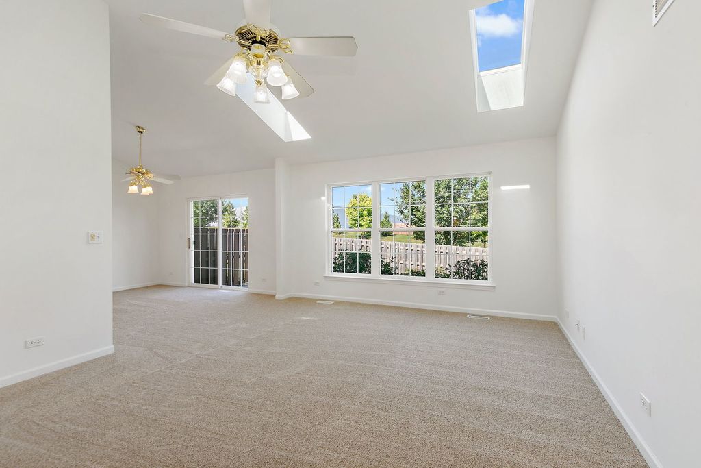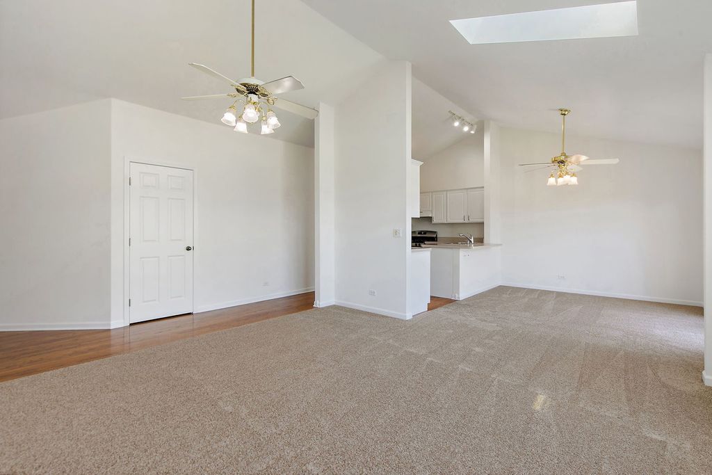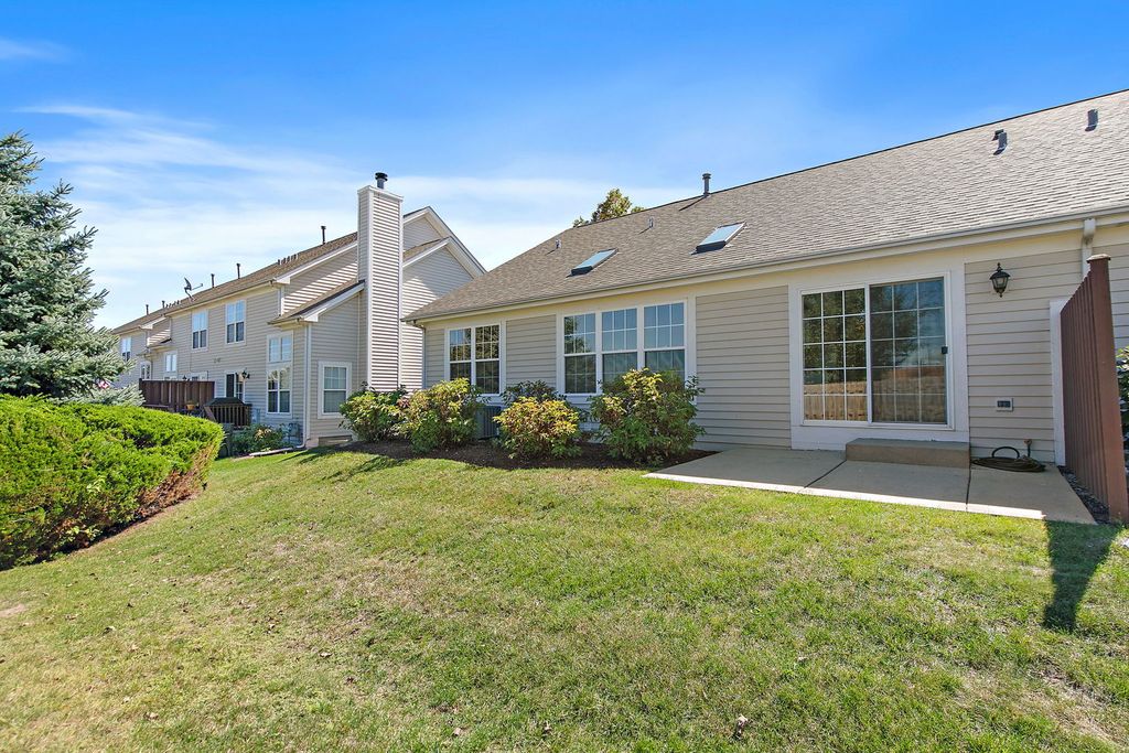 Rare end unit ranch with hardwood flooring, new carpet & paint, white kitchen with newer appliances opens to eating/living room. Finished basement with family room, wet bar, FPL, 3rd bedroom, bath, storage etc. Newer HVAC, roof/skylites, washer/dryer, bar fridge etc... Verseman-built, professionally landscaped, partially fenced yard with patio. Pet-free. Near shopping and Route 14. Good condition. Sold as is. Shows very well.