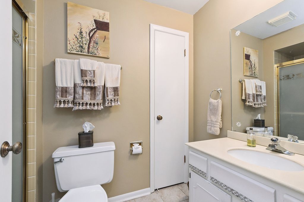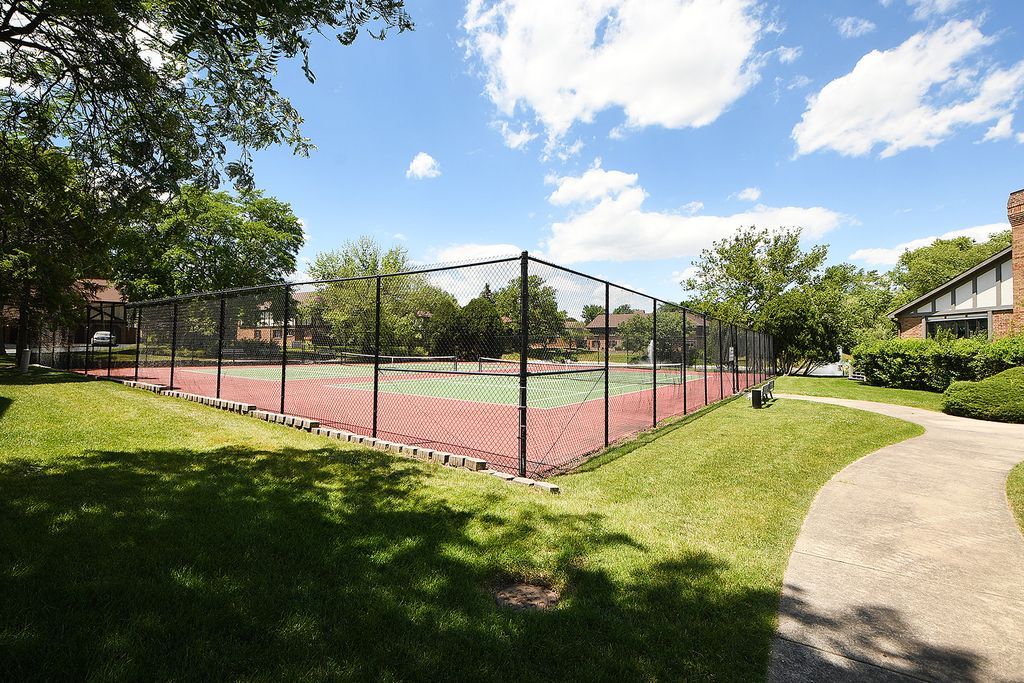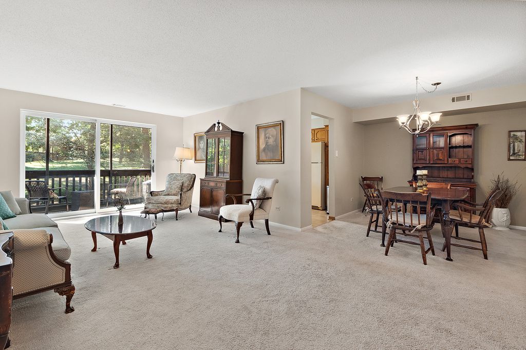 Welcome to beautiful Oak Hills Country Club Village. When you reside in Oak Hills you are already on vacation! Enjoy winding roads, hills, mature trees and ponds with fountains. There are many social activities, clubhouse, pool and tennis/pickleball courts all within the community. Plus, there is a public 9-hole golf course and forest preserves. There's even a pro shop with beverages and snacks. There's a restaurant in the community also. Oak Hills offers a variety of townhomes/condos plus an on-premises management team 5 days a week. You won't feel like you live in a condo. Enjoy the south view of the tall Oak Trees from your living room, bedrooms, balcony and kitchen window. This is a rarely available large 2-bedroom 2 bath condo end unit in an ELEVATOR building with a parking space convenient to the elevator in the underground heated garage. Plus, your condo is just a few steps from the elevator. Recent improvements are newer Quartz countertop and subway tile backsplash, newer dishwasher, microwave in the kitchen; newer windows, 2023, newer Central AC/Furnace and Humidifier, and newer washer. You will love the window over the sink looking out at the tall oaks. Master bedroom suite has a private bathroom and a walk-in closet with California organizers. There is a storage locker in the garage too. Enjoy Country Club living that offers many social events if you wish to join including golf groups, card clubs, women's clubs. You can also rent the clubhouse for private events. This is paradise. Welcome Home!