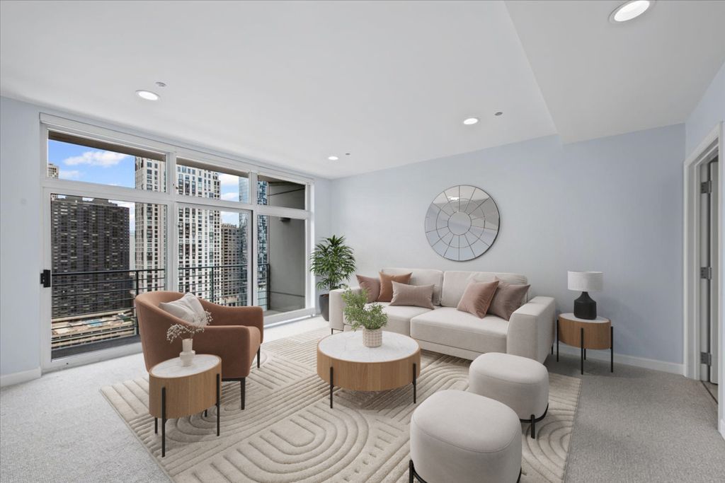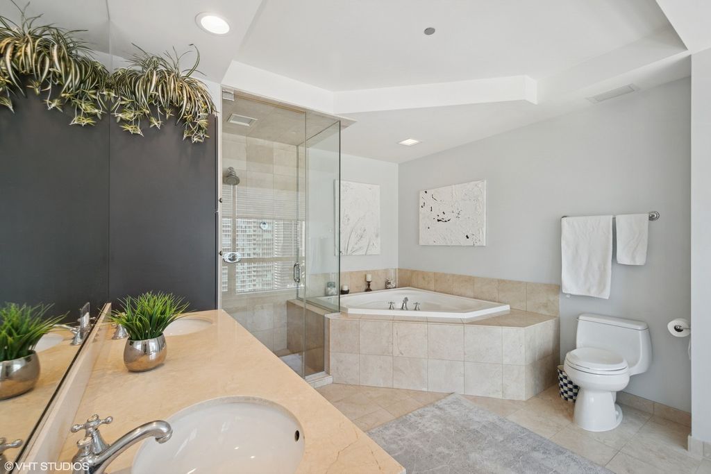 Experience full service, luxury living in Chicago's vibrant Streeterville neighborhood. This 3917 sqft home offers a spacious 3-bedroom, 3.1-bathroom layout, with 9 ft ceilings and 2 private balconies. The nearly 1000 sqft primary suite has a large walk in closet with custom lighting, motorized shades and a spa-inspired bath with oversized tub and steam shower. A separate wing (with its own exit door) has 2 more bedrooms, 2 bathrooms and a 17x16 family room which could be easily converted to a 4th bedroom or private office. The 18x16 kitchen has an oversized island, double ovens, SubZero, warming drawer and expansive counter space. Laundry room with S/S WD and separate sink. Breathtaking north, south and east views overlooking the lake, Chicago River and city skyline. List price includes two deeded parking spaces on the 1st floor of the garage: one space is double wide/handicap accessible, the 2nd is EV charging capable, guest parking spaces are also available. This full service building offers 24 hour door staff/maintenance team, onsite manager, dry cleaners, bike rooms and car wash bay. The 6th floor has a party room with catering kitchen, fitness center, yoga studio, indoor lap pool, jacuzzi, locker rooms with saunas and a large south facing sundeck. Located on the Chicago River just steps from Target, Whole Foods, Northwestern Medical Campus, dining and shopping. The building is very pet friendly and has an adjacent dog run. Over $4M in building reserves.