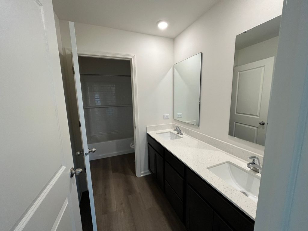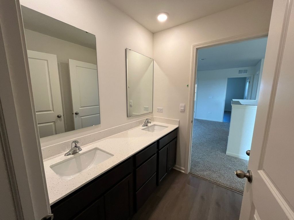Discover yourself at 14937 South Parkview Drive in Plainfield, Illinois a beautiful new home in our Greenbriar community, located in Plainfield North School District 202. This home will be ready for a fall move-in! Homesite includes fully sodded yard, landscape package, and stone accents on the front of the home. The Coventry plan offers 2,836 square feet of living space with a flex room, 4 bedrooms, 2.5 baths, 2 car garage, 9-foot ceilings on the first floor, and full basement with lookout over pond. Entertaining will be easy in this open-concept kitchen and family room layout with a large kitchen island with an overhang for stools, 42-inch designer cabinetry with crown molding and soft close drawers. Additionally, the kitchen features a butler's pantry, modern stainless-steel appliances, quartz countertops, and easy-to-maintain luxury vinyl plank flooring. More flexible space is waiting upstairs with the second-floor loft, offering unlimited potential to suit your needs. Enjoy your private getaway with your large primary bedroom and en suite. The primary bath includes a raised height dual sink, quartz top vanity, and walk-in shower with clear glass shower doors. Convenient walk-in laundry room, 3 additional bedrooms with a full second bath, and a linen closet compete the second floor. All Chicago homes include our America's Smart Home Technology, featuring a smart video doorbell, smart Honeywell thermostat, smart door lock, Deako smart light switches and more. Exterior photo of actual home. Interior photos are of similar home and model home. Actual home built may vary.