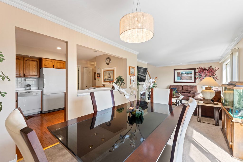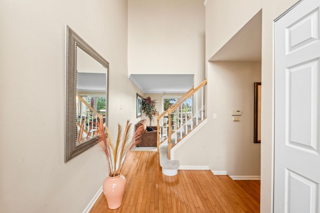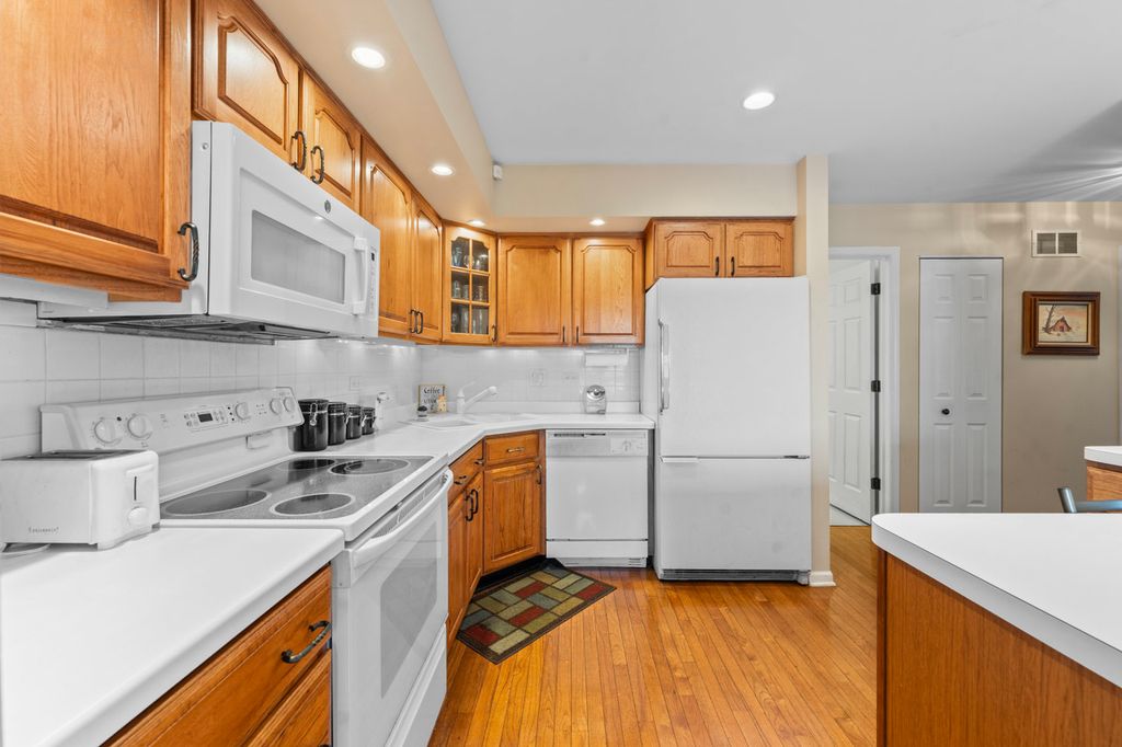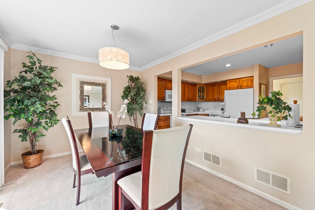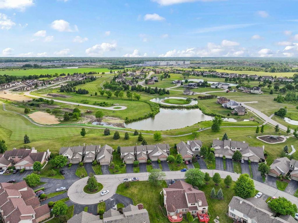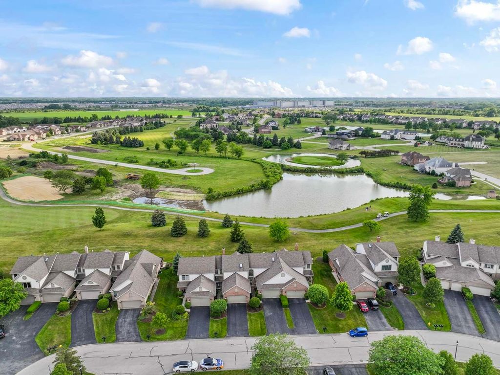 Discover this meticulously maintained 2-story townhome in prestigious Odyssey Country Club with breathtaking golf course and pond views. Original owners have lovingly cared for every detail of this move-in ready gem featuring an open concept design with abundant natural light, crown molding, and gleaming hardwood floors throughout. The gourmet kitchen showcases hickory cabinets, breakfast bar, under-cabinet lighting, recessed fixtures, tile backsplash, and Corian sink, with all appliances included (oven, microwave, dishwasher, refrigerator, washer, dryer, disposal). The spacious primary suite offers a walk-in closet and full bath with double sinks and skylight, while the flexible second-floor loft provides perfect home office space. Practical features include main floor laundry with extra cabinet storage, a finished basement adding 392 SF of living space plus large storage room, and an extended deck overlooking serene water views. The property includes a 2-car attached garage with door openers and transmitters, new roof (2017), carpeting throughout, central air and gas forced air heating, professional landscaping, and full basement with sump pump. Lifestyle amenities include walking distance to parks and playground, gated community entry, and HOA services covering exterior maintenance, lawn care, snow removal, and common insurance. Conveniently located close to commuter train and interstate access in pet-friendly community (cats and dogs welcome). HOA: $210/month + $100 Master Association | Lot: 30x107. Prime Tinley Park location in sought-after Odyssey Country Club subdivision - this turnkey townhome offers luxury living with low-maintenance convenience.