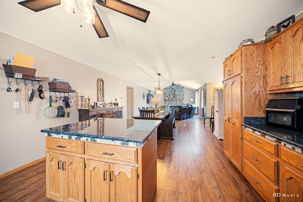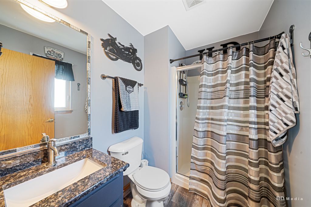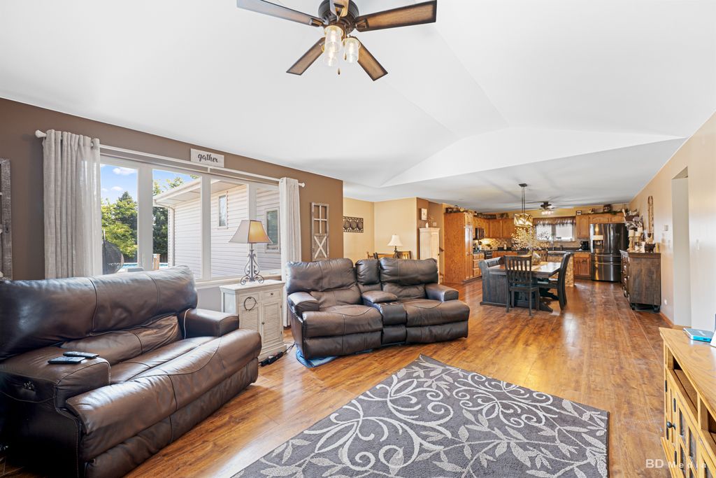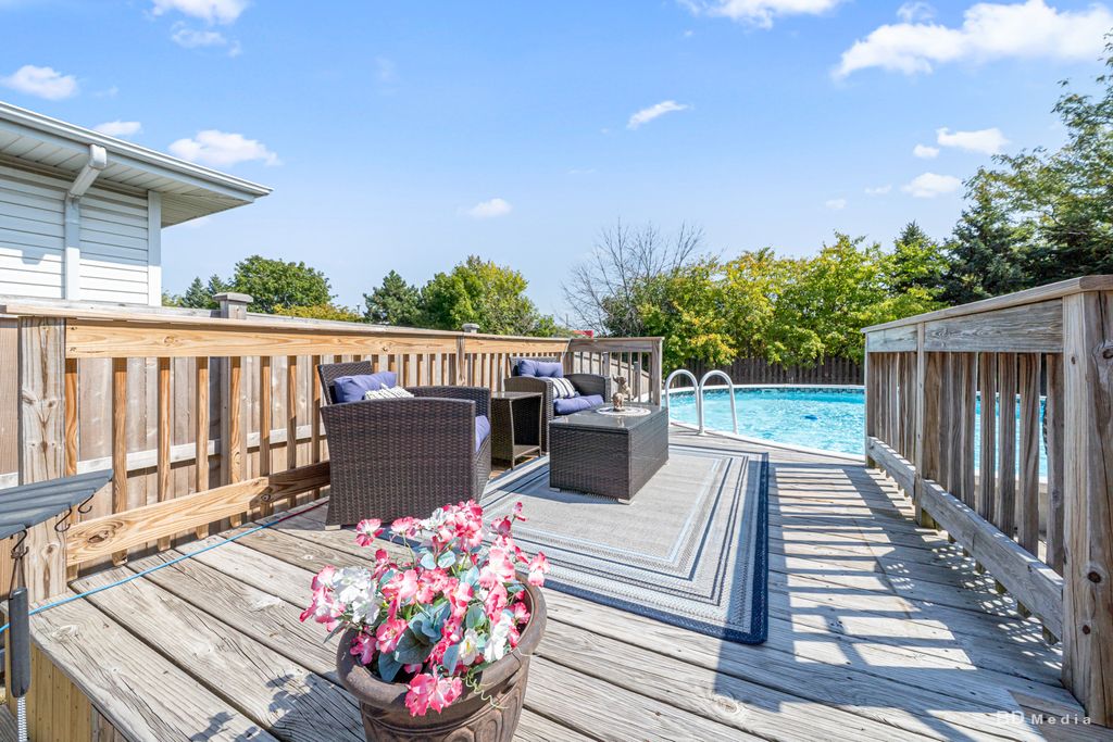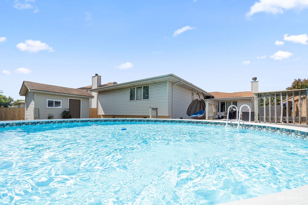 Welcome to this meticulously maintained three-step ranch offering comfort, style, and plenty of space inside and out. This beautiful home features 3 bedrooms and 2.5 bathrooms, including a private master suite with its own bath, spacious walk-in closet and laminate flooring. The inviting family room showcases a cozy, cobblestone, gas fireplace, perfect for relaxing evenings, while the updated kitchen boasts granite countertops, stainless steel appliances, and a center island ideal for cooking and entertaining. The home is enhanced with waterproof laminate plank flooring throughout the living room, family room, kitchen, and dining area. New carpet in the upper-level bedrooms for a fresh, modern feel. The full basement offers abundant storage and living potential, including a section with impressive 10-foot ceilings and all-new flooring, including roughed-in plumbing for an additional bathroom. Step outside to your private backyard retreat featuring a deck with pool, a separate patio area for entertaining, gas hookup and a handy storage shed. Furnace and A/C~5 years old. Water heater heater, sump up and fence~1 year old. This home truly combines thoughtful updates, exceptional care, and inviting spaces-ready for you to move right in and enjoy.