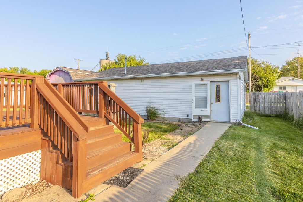 This adorable 1-2 bedroom, 1 bath home sits on a spacious double lot totaling .34 acres and offers plenty of charm and flexibility. The main level features a cozy living room, dining room, and a versatile bonus room-perfect as a family room, office, or hobby space. Sliding glass doors lead out to a fantastic deck, ideal for entertaining or simply enjoying the outdoors. One bedroom is currently being used as an office, and with the addition of doors, it could easily serve as a second bedroom. Convenient main floor laundry is included. The home also boasts a full unfinished basement, gas heat, and central air. Outside, you'll find a 3-car detached garage, storage shed, and plenty of yard space for gardening, play, or future projects. This home is move-in ready, full of character, and won't last long-come see why it's the perfect place to call home!