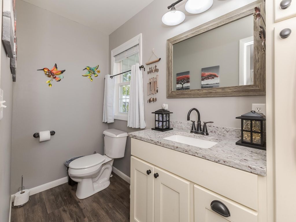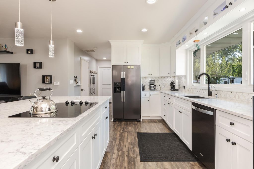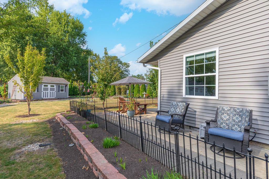 Look no further-this stunning 4 bedroom, 1.5 bath ranch offers the perfect blend of comfort, updates, and functionality. Step inside to an inviting open-concept living room and updated kitchen featuring beautiful cabinetry, quartz countertops, and a striking arabesque backsplash. All appliances stay. The attached 2-car garage has been transformed into a versatile, heated and cooled living space, complete with an epoxy-finished floor and a retractable screen garage door-perfect for year-round use. In addition, an Amish-built 2-car detached garage offers insulation, heating, a gorgeous wood ceiling, workbenches, and custom cabinetry. A portable shed also stays with the property. Out back, pride of ownership shines through in the beautifully landscaped yard on half acre lot, complete with a variety of mature trees, fruit trees, and a small fenced-in area for added convenience. Whether relaxing on the patio or enjoying the privacy of your own backyard oasis, this home truly feels like paradise.