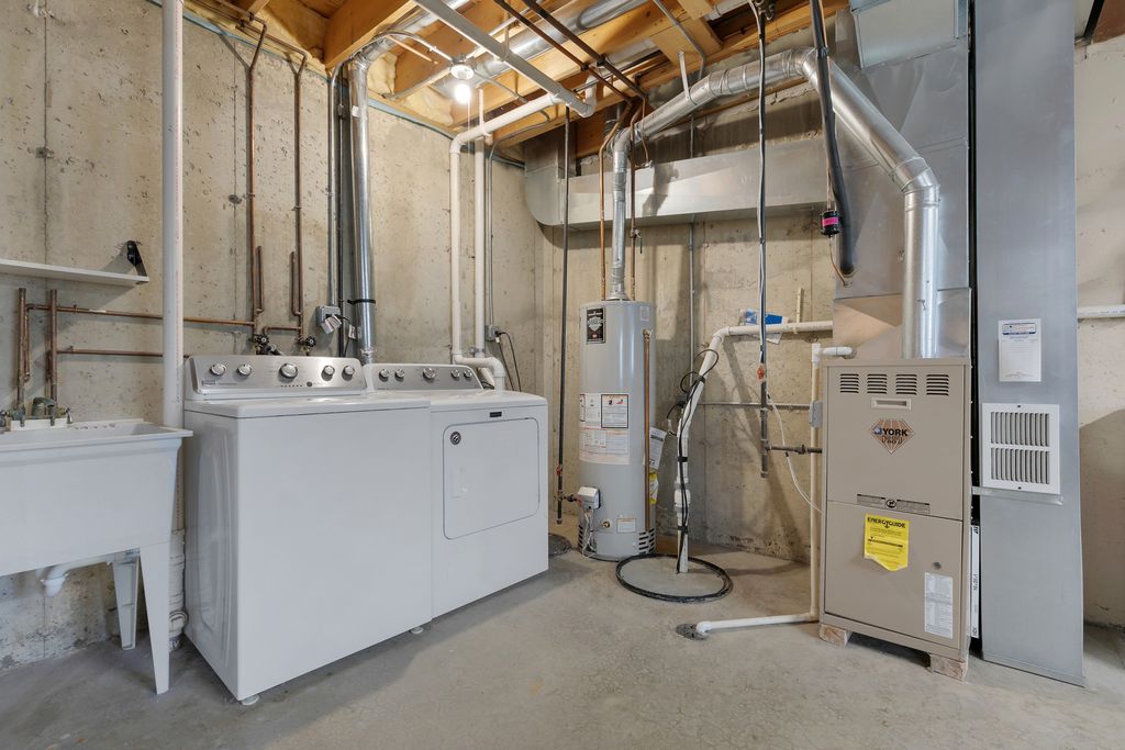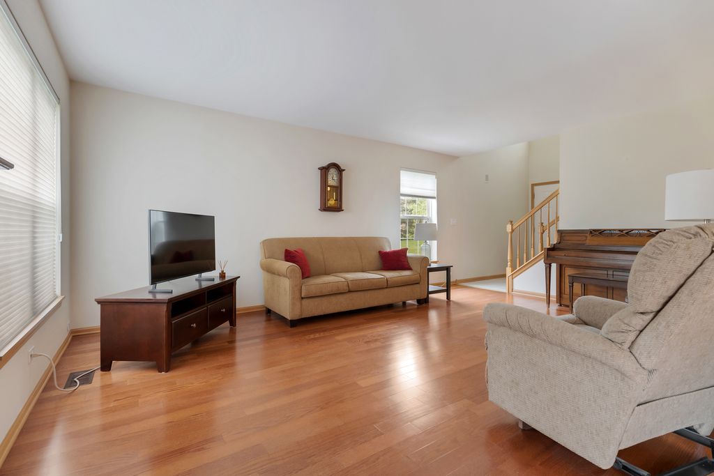 Rare opportunity to live in a Two Story End Unit in Hampton Oaks! 3 Bedrooms all with walk in closets. Inviting entry to a large and bright living room with Gas Fireplace. Dining with sliders to deck. Kitchen and half bath complete first floor. Primary Bedroom boasts vaulted ceiling with bathroom and large walk in closet. The other 2 bedrooms are generously sized and also have walk in closets. Laundry in the Full Unfinished English Basement with storage shelves and roughed in plumbing. 2 Car Attached Garage. End Unit, Backs to Walking Path. Close to shopping and expressways.