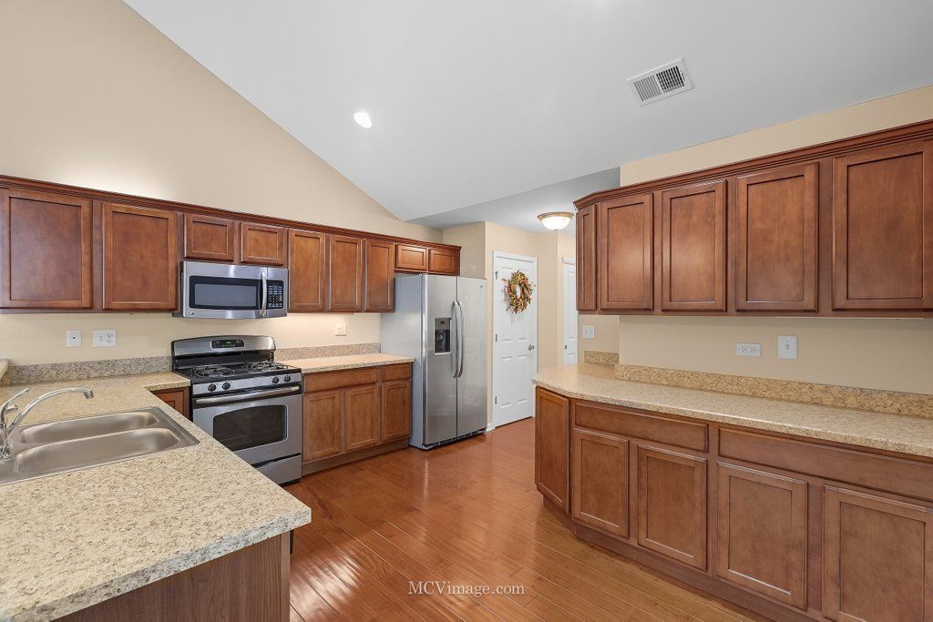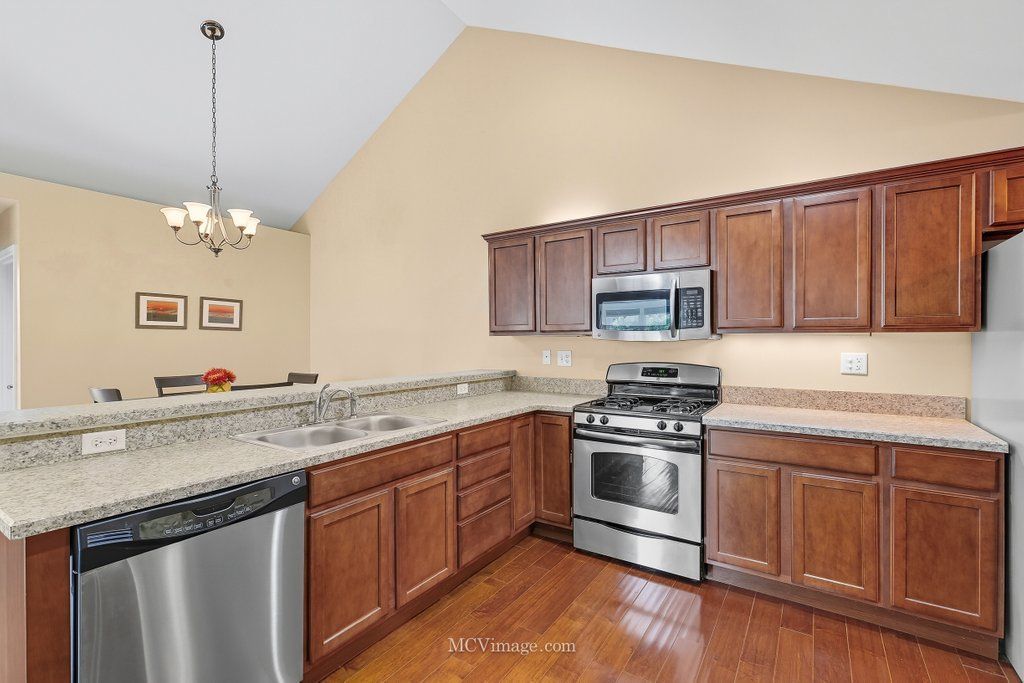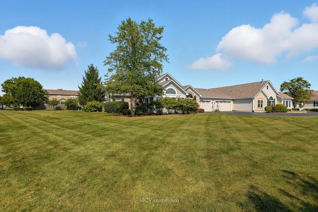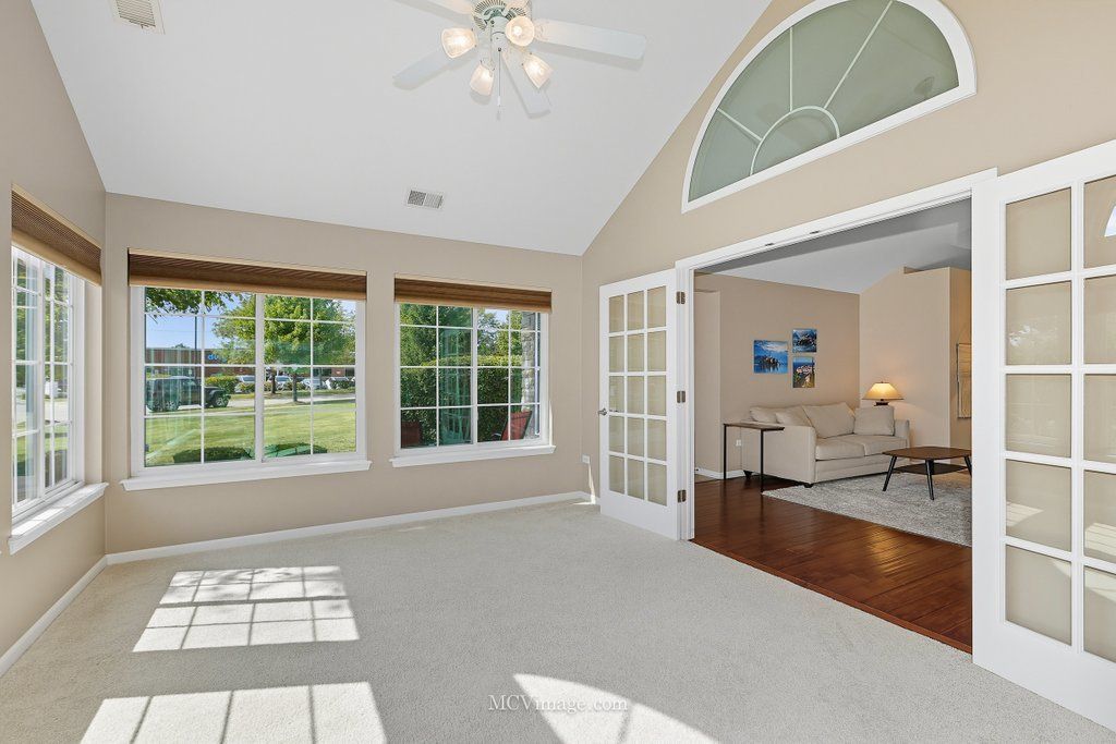 Ranch style living at it's finest in the Villas at Fox Run! The great room grounds the home and opens to the dining area and large kitchen. The home showcases vaulted ceilings, updated fans and lighting, white trim and paneled doors throughout. The hand-scraped hardwood flooring is in impeccable condition along with the stainless steel kitchen appliances and LG washer/dryer. Entertain in the spacious kitchen with gorgeous maple cabinetry complete with drawer pull-outs. Massive sun room offers so much natural light. The owner's suite has a large walk in closet and private bathroom with a separate shower, spacious vanity, and linen closet for additional storage. The secondary bedroom also has a walk in closet. 2 car garage. There is a patio and large green area. The home is across from the pool and clubhouse. Easy access to highways, shopping, restaurants and health care.