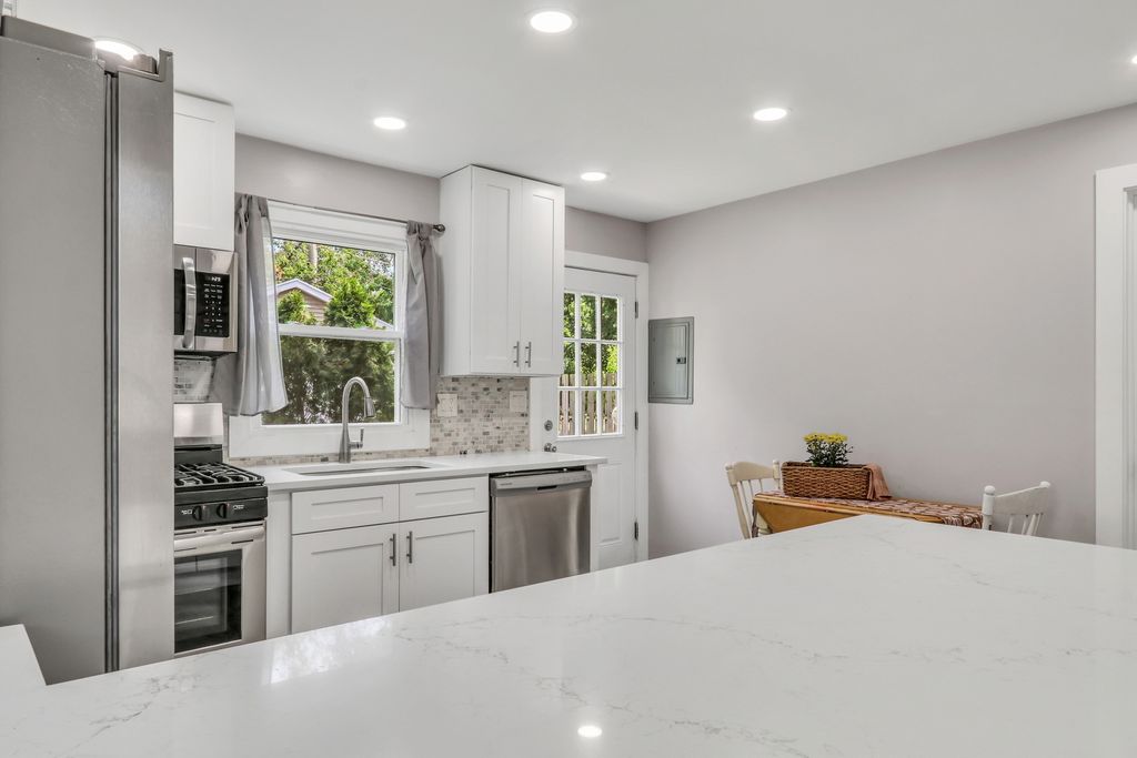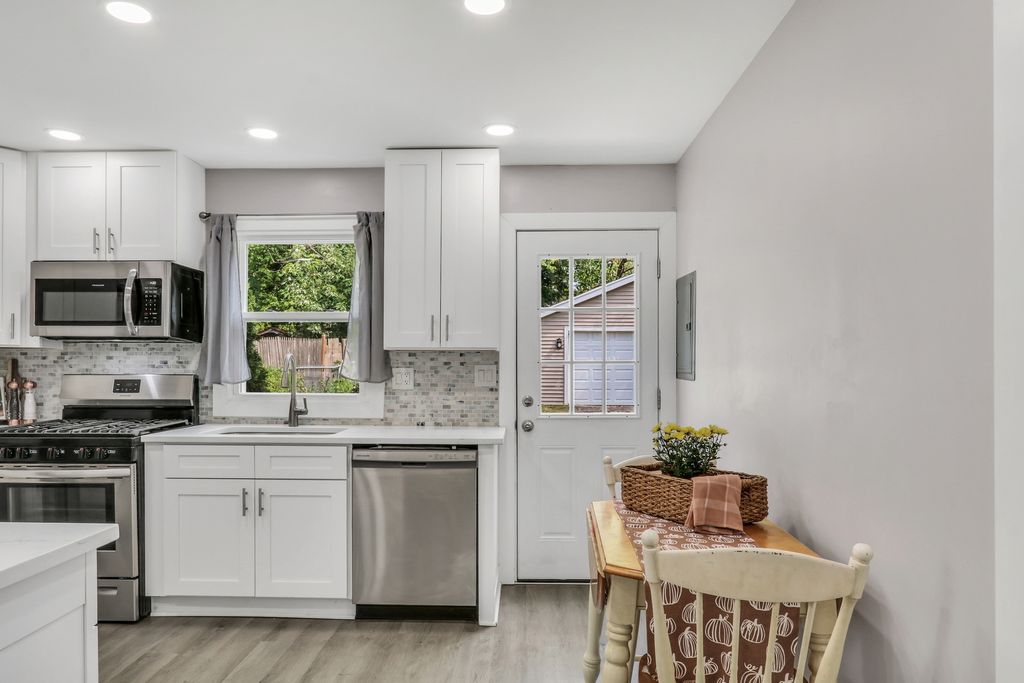 Absolutely adorable! Who doesn't want a big beautiful covered front porch that says WELCOME HOME! Beautiful turn-key condition! So many possibilities to turn this floor plan into whatever you need! 2 1st floor bedrooms can easily become your home office and family room! GORGEOUS new kitchen with White Shaker Cabinets/miles of quartz counters/NEW SS appliances, pantry, hardware, recessed lighting and access to your backyard! Fresh Paint throughout! Spacious living room! Sparkling NEW full baths! 2nd level BIG bedrooms share full bath! 1st floor bedrooms and full bath are perfect if you prefer no stairs! NEW fenced yard! Storage shed for all your garden equipment! Big 2 car garage! Fabulous location ~ so close to all the shopping/dining/entertainment/parks and major roads! Come take a look ~ we'll leave the lights on for you! HVAC 2023, H20 2023