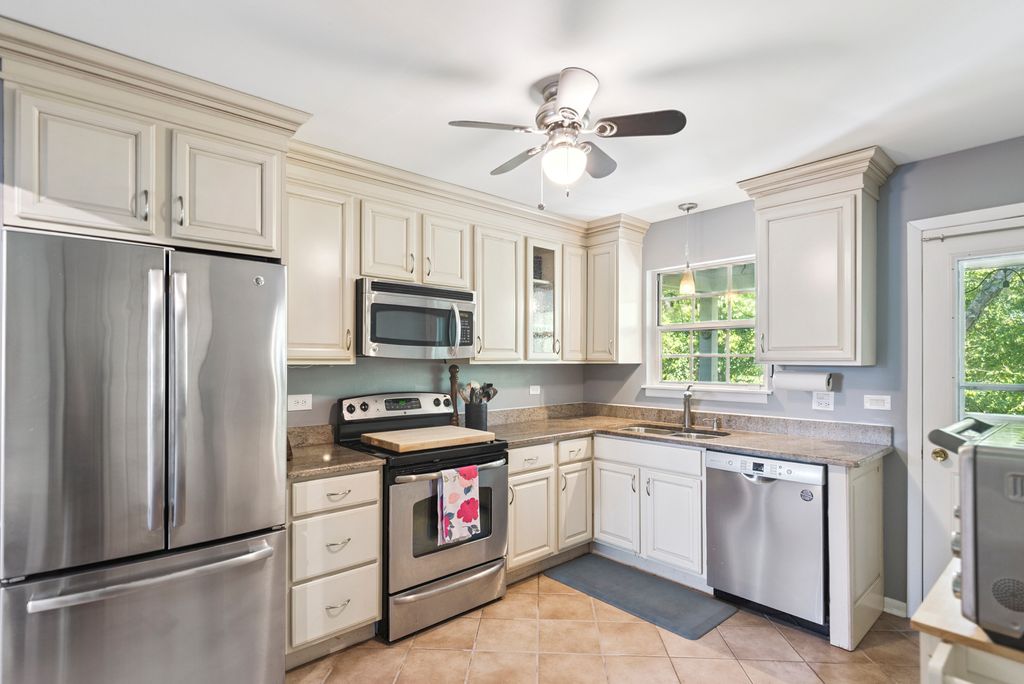 Charming treetop condo with soaring vaulted ceilings! Just a short walk to downtown Libertyville's restaurants, shops, library, Metra, and entertainment. This home features an updated kitchen with stainless steel appliances, granite countertops, and ample workspace for the cooking enthusiast. The spacious primary bedroom offers a private ensuite and peaceful views of the surrounding green space. A second bedroom and full hall bath provide additional comfort and flexibility. The open layout is ideal for both everyday living and entertaining, with abundant natural light throughout. In unit laundry. Parking includes a single-car garage with generous storage space plus an assigned outdoor space. Easy access to major transportation adds to the convenience.