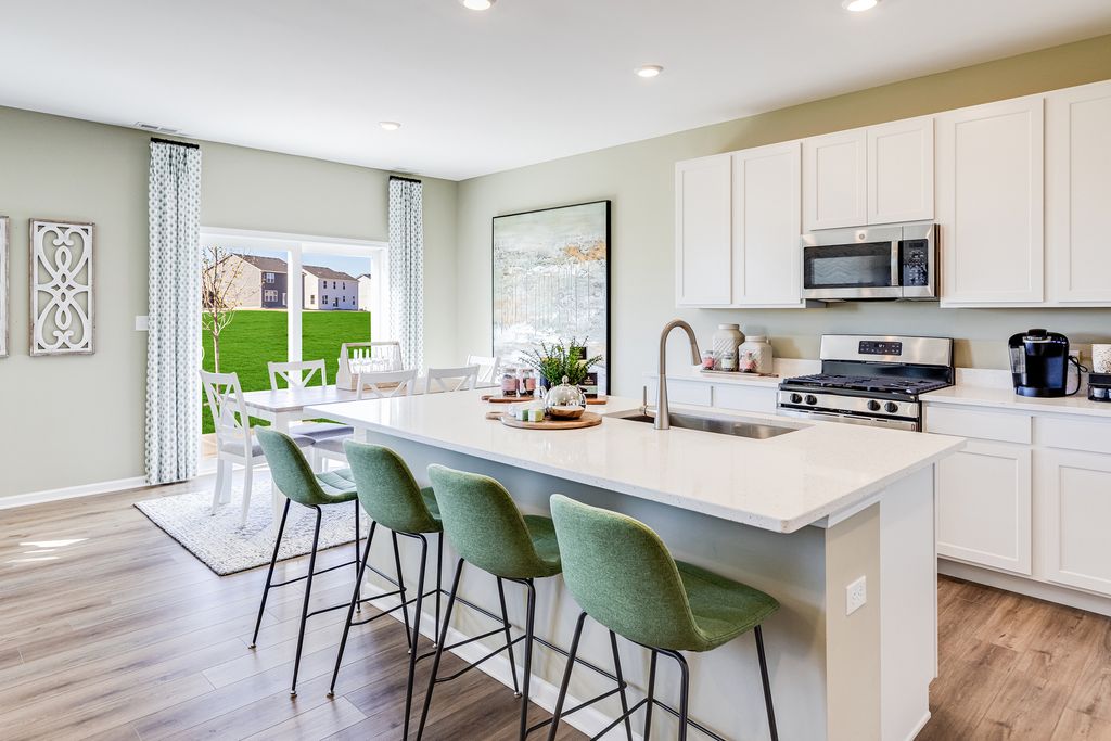 SPECIAL FINANCING OFFERS AVAILABLE!! AVAILABLE FOR JANUARY DELIVERY!! Homesite #0050 Welcome to the Rutherford - a beautifully crafted single-story home that perfectly blends modern design with everyday functionality. Thoughtfully laid out with three spacious bedrooms and two full bathrooms, this open-concept floor plan is designed to promote effortless flow and comfortable living. At the heart of the home, the stylish kitchen impresses with a large center island, Quartz countertops, sleek stainless steel appliances, and ample cabinetry-ideal for everything from casual weeknight meals to lively weekend gatherings. The private owner's suite serves as a serene retreat, featuring a generous walk-in closet and a spa-inspired en-suite bath with premium fixtures and finishes for a truly relaxing experience. Two additional bedrooms are conveniently located near a shared full bathroom, making them perfect for family, guests, or a dedicated home office. Designed with both comfort and style in mind, the Rutherford includes 9-foot ceilings, luxury vinyl plank flooring, plush carpeting in bedrooms, Deluxe shower upgrades, smart-height water-saving commodes, and many more premium features that enhance modern living. Whether you're downsizing or seeking a more streamlined lifestyle, the Rutherford is a smart and sophisticated choice for today's homeowner. (pic for reference ONLY) *Photos are not this actual home* The community features an impressive collection of state-of-the-art amenities, including an 8,000-square-foot clubhouse and Tomaso Sports Park, an onsite park that is also available to the public. Talamore residents are surrounded by golf courses, recreation-rich parks and nature preserves ideal for outdoor enthusiasts. There is also a weekly farmer's market, annual events and more nearby in Downtown Huntley. Under an hour away is Chicago for big city living and access to Lake Michigan.