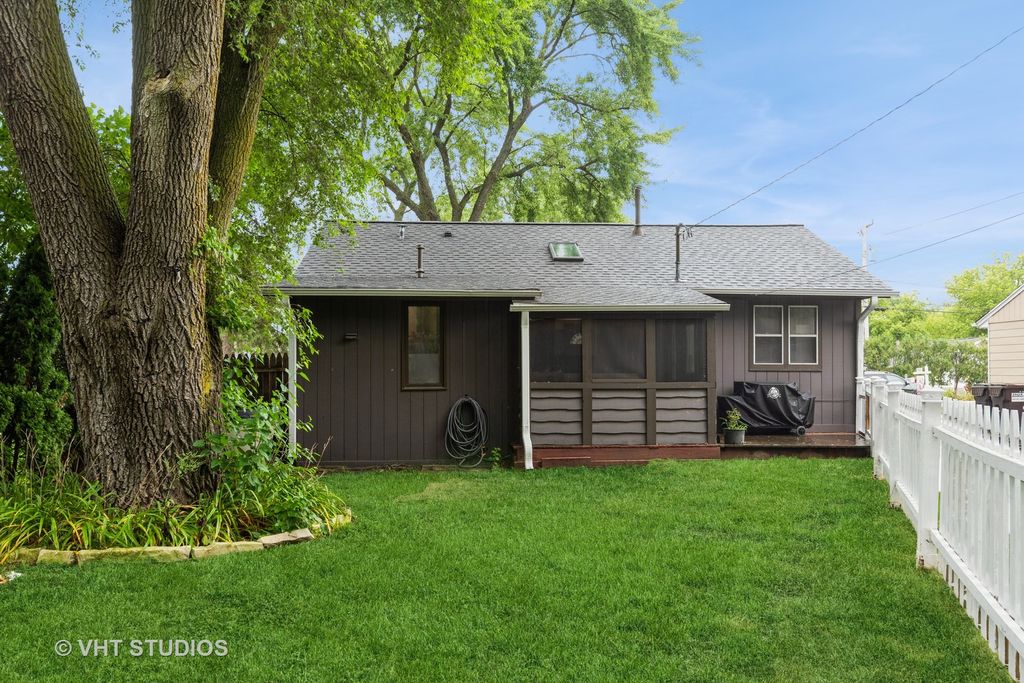 WALK TO DOWNTOWN MCHENRY AND THE RIVERWALK from this adorable one story home with WATER RIGHTS! Enjoy everchanging river views and a beautifully landscaped, fenced backyard, perfect for relaxation or a summer barbeque! Recent updates include a new roof and gutters, new skylight windows, new light fixtures, newer flooring, fresh interior and exterior paint, a newly seal coated driveway, and a charming white picket fence. Step inside from the welcoming front porch into a vaulted living room filled with natural light, featuring a bay window and skylight. The spacious eat-in kitchen offers generous wood cabinetry and a sunny dining area. Two comfortable bedrooms with ample closet space are served by a full bathroom. A separate laundry room conveniently located off the kitchen leads to a cozy screened porch, ideal for warm summer nights. The detached garage provides parking, storage, and space for lawn equipment. With TWO beaches and water rights, LOW taxes, and a prime LOCATION, this SWEET home is a perfect starter, downsizer, or investment opportunity. Walk to dining, shopping, parks, water recreation and schools. Easy access to Route 120, Route 31 and the Metra station. Isn't it time to make 1506 N. River Road your wonderful NEW home?!