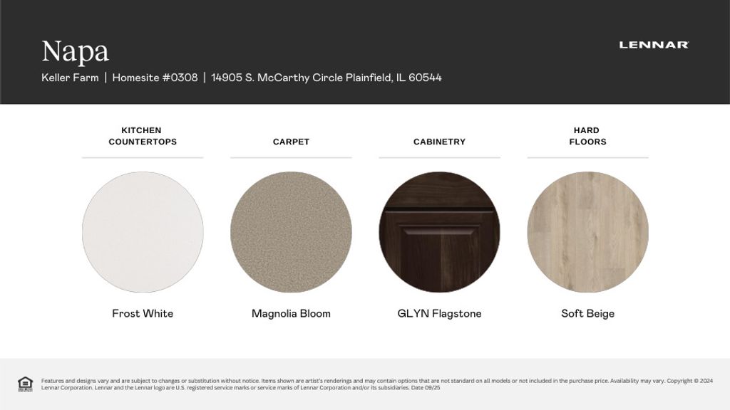 SPECIAL FINANCING AVAILABLE!! READY FOR NOVEMBER DELIVERY!!!! Homesite #0308. The Napa is a thoughtfully designed single-story home that perfectly blends modern convenience with comfortable living. This elegant floor plan features two bedrooms, two full bathrooms, and an open-concept layout that seamlessly connects the kitchen, family room, and dining area-creating a welcoming space ideal for both everyday life and entertaining. At the heart of the home, the stylish kitchen showcases a large center island, Quartz countertops, stainless steel appliances, and abundant cabinetry-ideal for meal prep, hosting, or casual dining. A private study provides a flexible space for a home office, reading nook, or creative retreat. Additional conveniences include a dedicated laundry room and a spacious two-car garage for added functionality. The owner's suite offers a tranquil escape, complete with a generous walk-in closet and a luxurious en-suite bathroom. A secondary bedroom and full guest bathroom provide comfortable accommodations for family or visitors. This home also includes 9-foot ceilings, luxury vinyl plank flooring, plush carpeting, Deluxe shower upgrades, smart-height water-saving commodes, and many more premium features designed to enhance your lifestyle. Exterior will be Aspen White color vinyl siding with Kings Mill color brick. (pic for reference ONLY) *Photos are not this actual home* Experience the best of suburban living at Keller Farm, a thoughtfully planned community coming soon to Plainfield, Illinois. Featuring the Andare Series of low-maintenance ranch homes, Keller Farm is designed for easy, modern living in a vibrant and connected setting. This exciting new neighborhood will offer exceptional onsite amenities, including a nearly 30-acre park, an extensive trail system, and almost five additional acres of parkland-ideal for outdoor adventures, family fun, and peaceful everyday moments. Situated in the thriving city of Plainfield, Keller Farm delivers the perfect balance of small-town charm and modern convenience. Just minutes from home, Downtown Plainfield offers a lively mix of boutique shops, local restaurants, big-box retailers, and major supermarkets-whether you're running errands or enjoying a night out, everything is within easy reach. Plainfield is also known for its excellent recreation centers, beautiful parks, and a calendar full of year-round community events. From the festive St. Patrick's Day Parade to seasonal artisan markets and the ever-popular Plainfield Fest, there's always something to bring neighbors together. At Keller Farm, you'll find more than just a home-you'll discover a lifestyle built on connection, convenience, and community.