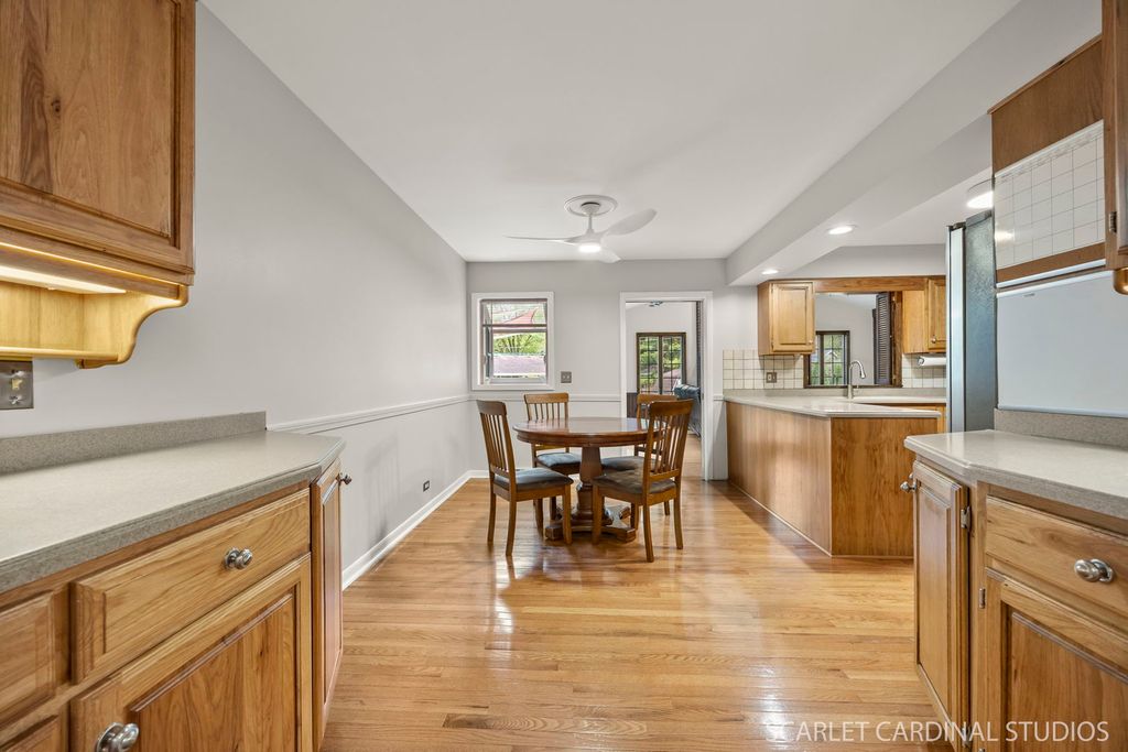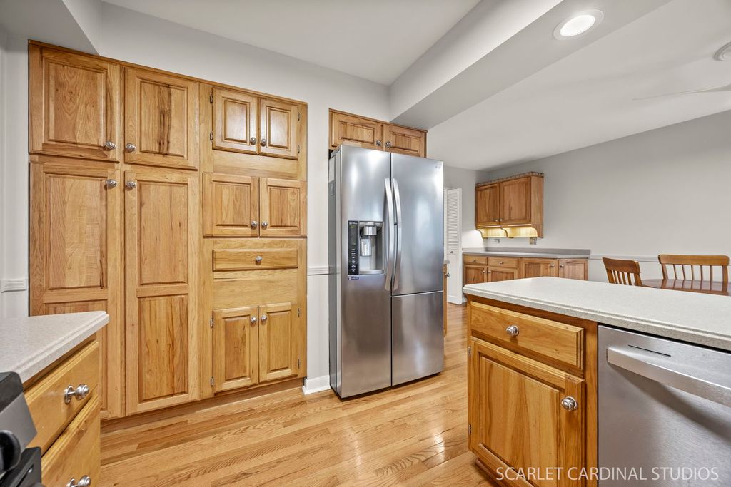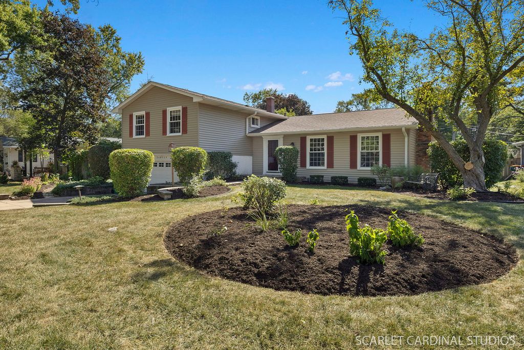 Welcome to this spacious and beautifully maintained 4-bedroom, 2.1-bath tri-level home nestled in one of Winfield's most sought-after neighborhoods! Located on a mature, tree-lined street and served by the award-winning Wheaton District 200 schools, this turn key home offers the perfect blend of comfort, charm, and convenience! The main level showcases hardwood floors throughout; a welcoming foyer with coat closet; a generously sized living room with a cozy gas fireplace; a formal dining room perfect for entertaining; a kitchen which features abundant cabinetry and a casual dining area; an expansive family room addition with a vaulted ceiling featuring an impressive natural wood beam accent for that warm rustic touch, floor-to-ceiling brick wood-burning fireplace you will love as fall gives way to winter, a wet bar, and custom wall of built-ins...all providing the perfect setting for relaxation or hosting. Sliding glass doors open to a multi-tiered deck overlooking a beautifully landscaped backyard-ideal for morning coffee or al fresco dining. Upstairs....also offering hardwood flooring...you'll find a spacious primary bedroom with a private ensuite bath; three additional bedrooms; and a full hall bath. The walk-out lower level adds valuable living space, including a rec room; a laundry space; and a convenient powder room. Additional features include a deep 2-car garage, and a huge concrete crawlspace offering excellent storage. Don't miss this opportunity to own a warm and inviting home in a prime location! Updates Include- Roof 2019, water heater 2020, washer & dryer 2017, furnace 2020, AC 2023, refrigerator 2020, dishwasher 2022, deck expanded & updated 2021, interior painting 2025, updated light fixtures and ceiling fans 2025.