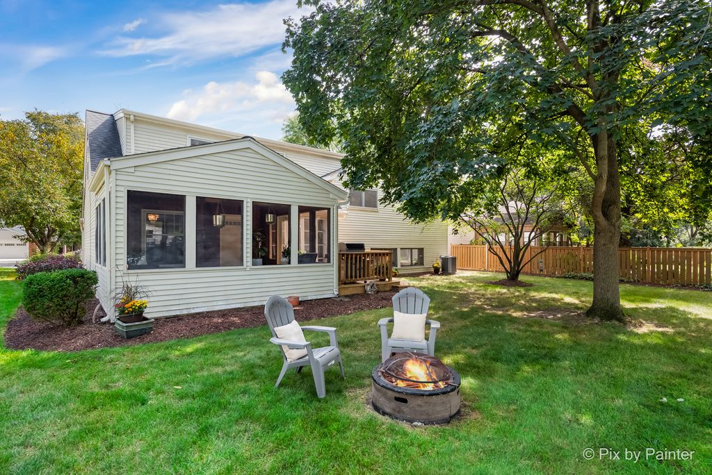 Welcome to this beautifully updated home in one of Naperville's most desirable locations. Perfectly situated within close walking distance of Naperville Central High School, the Riverwalk, and downtown Naperville, this home offers the best of convenience and community. Fully renovated, the home features a white and bright open-concept kitchen with granite countertops, a hidden beverage station in the refrigerator, a built-in air fryer convection microwave combo, a double oven, a huge bay window perfect for sunny days and thriving plants, and the quietest top of the line Bosch dishwasher-all new appliances in 2025. Light and bright throughout, the home also boasts new oak hardwood flooring, a gas fireplace, and a majestic cedar-enclosed and screened-in porch that feels spacious, serene, and zen-perfect for relaxing bug-free while overlooking the beautifully landscaped yard with a deck for barbecuing. Inside, you'll find a spacious updated laundry room and a sunny, open basement with built-in shelves and its own gas fireplace, providing both functionality and charm. Regular mulch and weed control keep the grounds pristine. Major updates include a new furnace and water heater in 2023, annual AC and furnace maintenance, annual vent cleaning and a built-in air scrubber for the cleanest indoor air. Upstairs, both bathrooms were recently remodeled with no expense spared: a $30K spa-inspired bathroom in 2024 featuring Bluetooth integration, a soaking tub, marble from floor to ceiling, premium hardware, and quartz-topped James Madison vanities, along with a second fully remodeled modern bathroom completed in August 2025. The third-floor master bedroom is enormous, filled with natural light, featuring a walk-in closet, and versatile enough to serve as a bedroom, recreation room, or den. A two-car garage adds everyday convenience and functionality. A new sump pump was installed in 2022, ensuring peace of mind. This is a home where every detail has been thoughtfully cared for-move-in ready, modern, and simply stunning.