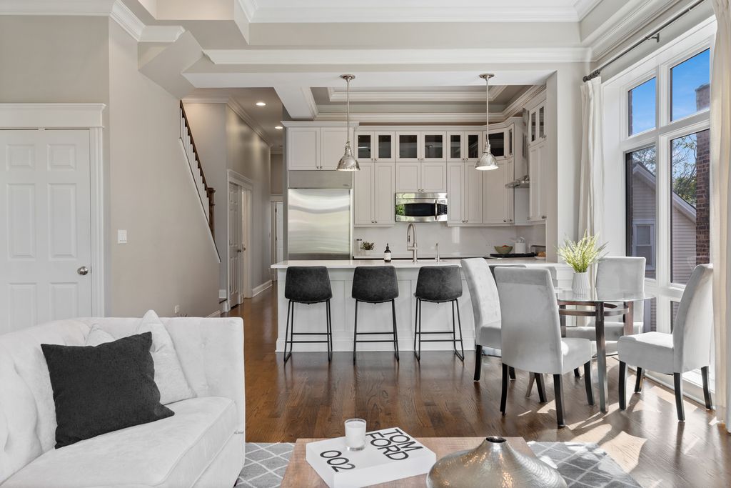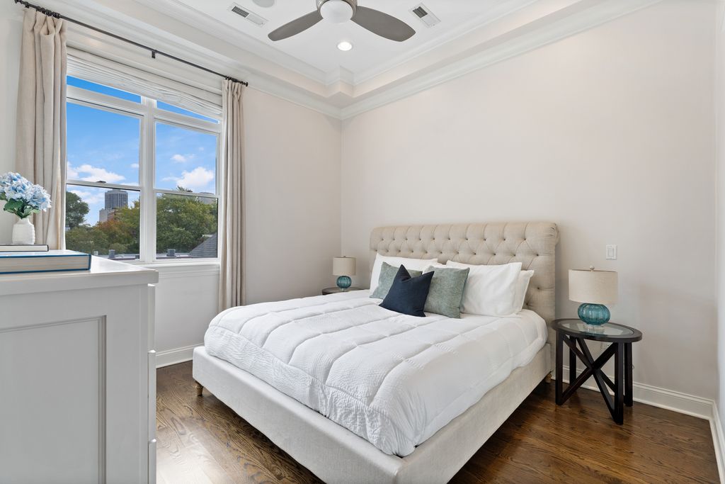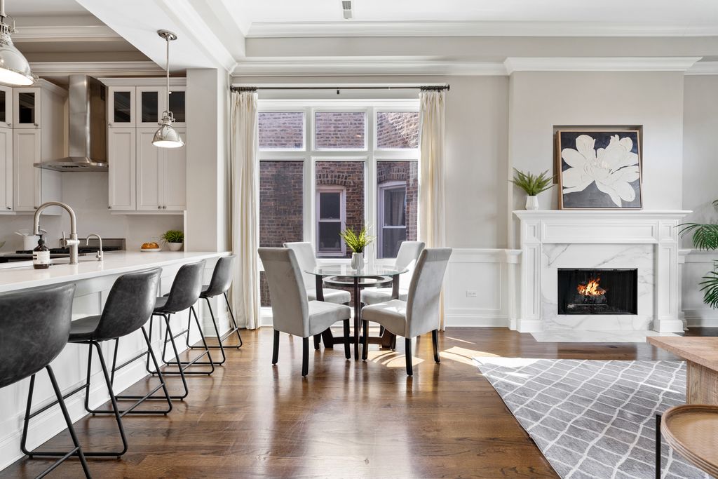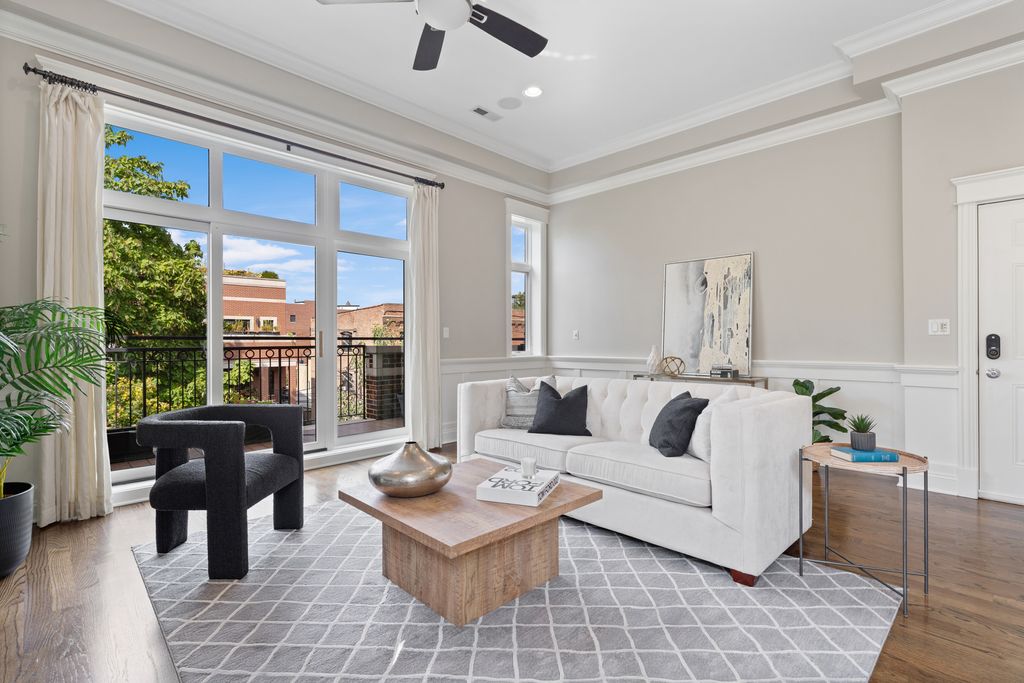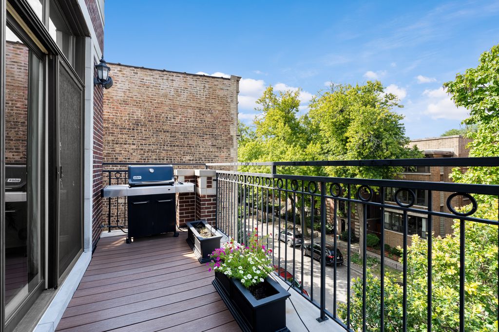Welcome to this gorgeous, extra-wide, top-floor penthouse, nestled on a quiet, tree-lined street in the heart of Lincoln Park. Set in a full masonry building, this home is thoughtfully designed for both entertaining and everyday luxury living. Loaded with high-end finishes and standout outdoor space, this home features interior staircase access to your own private rooftop deck with panoramic skyline views. The deck includes a pergola, irrigation system, and a landing area with a wine fridge and bar setup - truly an extension of your indoor living space. Inside, the bright and open floor plan features gleaming hardwood floors, high ceilings, floor-to-ceiling windows, and custom millwork and crown molding throughout. The width of the residence is immediately appreciated with the epitome of open concept living. The comfortable living room is anchored by a stylish gas fireplace, perfect for cozy nights. The gourmet kitchen boasts high-end Viking, Sub-Zero, and Bosch appliances, an exhaust hood, wine fridge, new quartz countertops and backsplash, updated cabinet hardware, and freshly painted cabinetry. Enjoy morning coffee, sunsets, or grilling on your west-facing front terrace, which flows seamlessly from the main living area and includes a gas line hookup for your grill. The east-facing primary suite is bathed in natural light and features a built-out walk-in closet, complemented by a custom 22-drawer built-in dresser recently added by the owner. The spa-inspired ensuite bath includes radiant heated floors, a steam shower, dual vanities, and a private toilet room with built-in storage. The second bedroom offers plenty of space and flexibility - perfect as a comfortable bedroom, or a home-office. It includes its own closet, plus custom built-in storage added by the owner. Healthy, proactive association with strong reserves. A++ Lincoln Park location! Steps from everything the area has to offer - Fresh Market, Trader Joe's, several parks, tons of restaurants and coffee shops, F45, Lincoln Park Athletic Club, and the Brown and Purple Diversey Station line. Alcott School District. Garage parking and additional storage room included!
