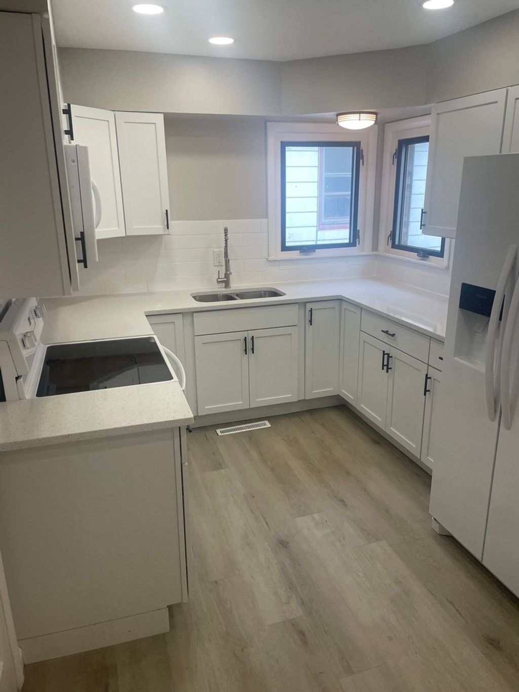 Recently renovated home with attached garage - just a short walk away from Small park. Buyers will appreciate the hard surface flooring. The bath has a tub and separate shower. Kitchen new - with dining area. Light and bright living room. Garage has a pull downstairs to attic access - built in wall of storage & it's heated. Roof 2022. Whole house fan.