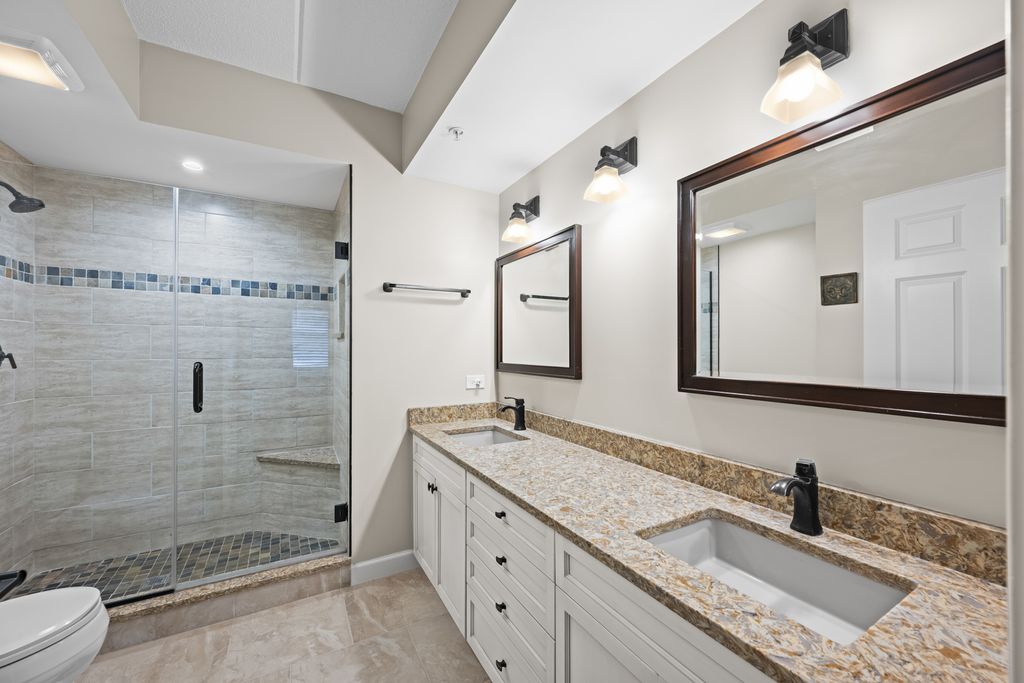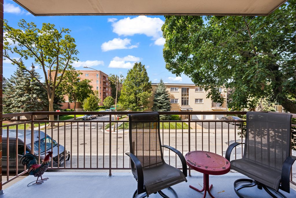 Bright and Spacious Open Floor plan 2 Bed/2 Bath Condo in the Heart of Downtown Des Plaines. Enjoy sun-filled living in this beautifully maintained 1,570 sq. ft. corner unit (Builder's Model Upgraded to the MAX), featuring a smart split-bedroom layout and modern upgrades throughout. The Open kitchen boasts 42" Antique White cabinets, Corian countertops, Center Island with granite counters and updated appliances. A large living room and separate dining room flows out to a large west-facing patio-perfect for soaking up the afternoon sun. Gleaming wood floors and efficient radiant heat. The expansive primary suite offers a walk-in closet and remodeled bath with easy entry step in shower with newer slate tile, built-in shower seat, double sinks, antique white vanity with Quartz counters, raised toilet and linen closet. The spacious second bedroom includes a large closet, new carpet and paint in 2022 and easy access to the second full bathroom-also upgraded with ceramic tile, raised toilet, Antique white cabinetry, and Corian countertops. Additional highlights include a separate laundry room with side-by-side updated washer and dryer and slop sink, elegant white six-panel doors with matching trim, closets with all wire shelving and numerous builder upgrades. The unit includes one heated garage parking space with a storage room directly in front, plus ample guest and second car parking behind the building. This elevator building is pet-friendly and owner-occupied only, with security cameras onsite for peace of mind. Just steps from the Metra UP-Northwest Line, Pace Bus, library, restaurants, the newly renovated Des Plaines Theater, and everything downtown has to offer. Quick access to I-294 and O'Hare Airport makes commuting a breeze.