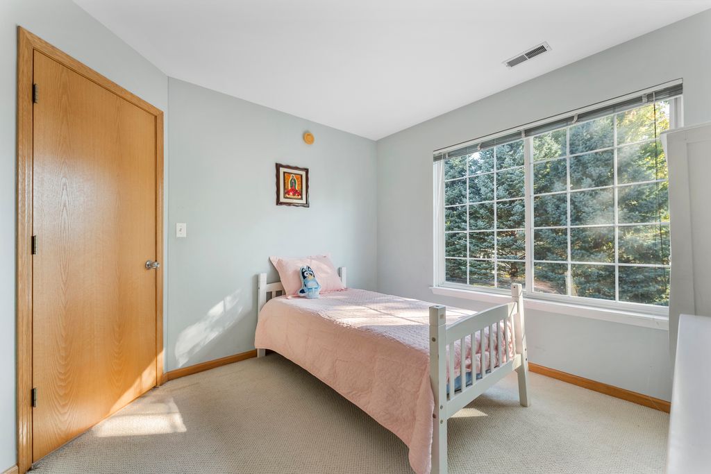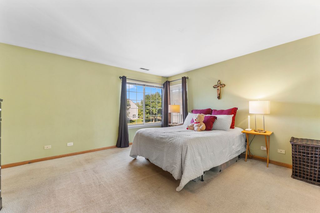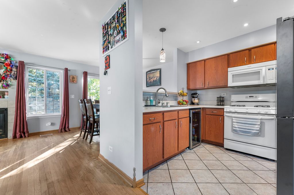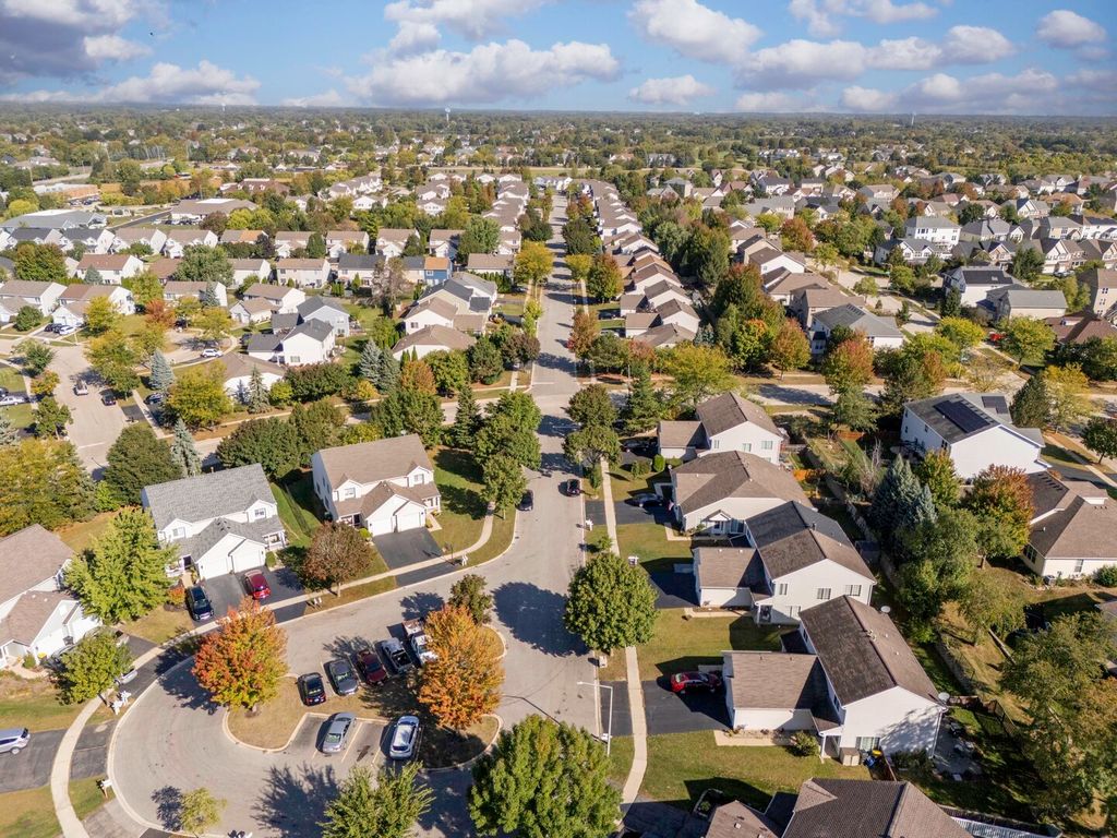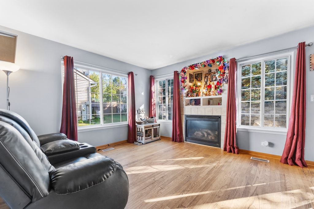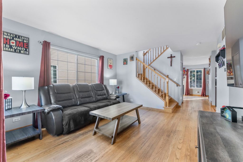 Don't miss this charming 2-story, 3 bedroom, 2.5 bath duplex tucked away on a quiet cul-de-sac in Lake in the Hills! The main level offers a bright and welcoming layout with hardwood floors in the living room, family room, dining area, and stairs. The family room features a cozy fireplace and opens directly to the dining area, with a pass-through from the kitchen for easy entertaining and everyday living. The kitchen has tile flooring, and all three bedrooms are upstairs. The primary suite and one additional bedroom are carpeted, while the third bedroom has hardwood floors. The primary suite includes its own bathroom and a walk-in closet, providing privacy and ample storage. Big updates have already been done for you - a brand new roof was installed in June 2025, the boiler was replaced in October 2024, and a water softener was recently added (financed). Outside, you'll enjoy a one-car attached garage with a private driveway and a small, easy-to-maintain yard. With no HOA fees and a location close to schools, parks, shopping, and dining, this home offers both comfort and convenience. Move right in and make it your own!