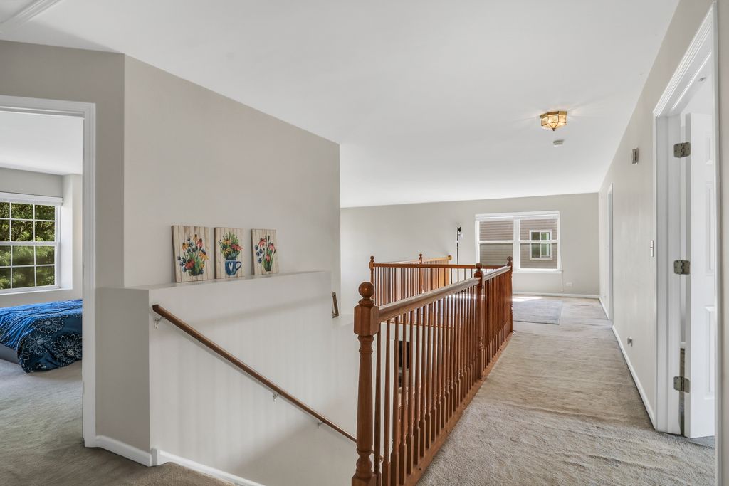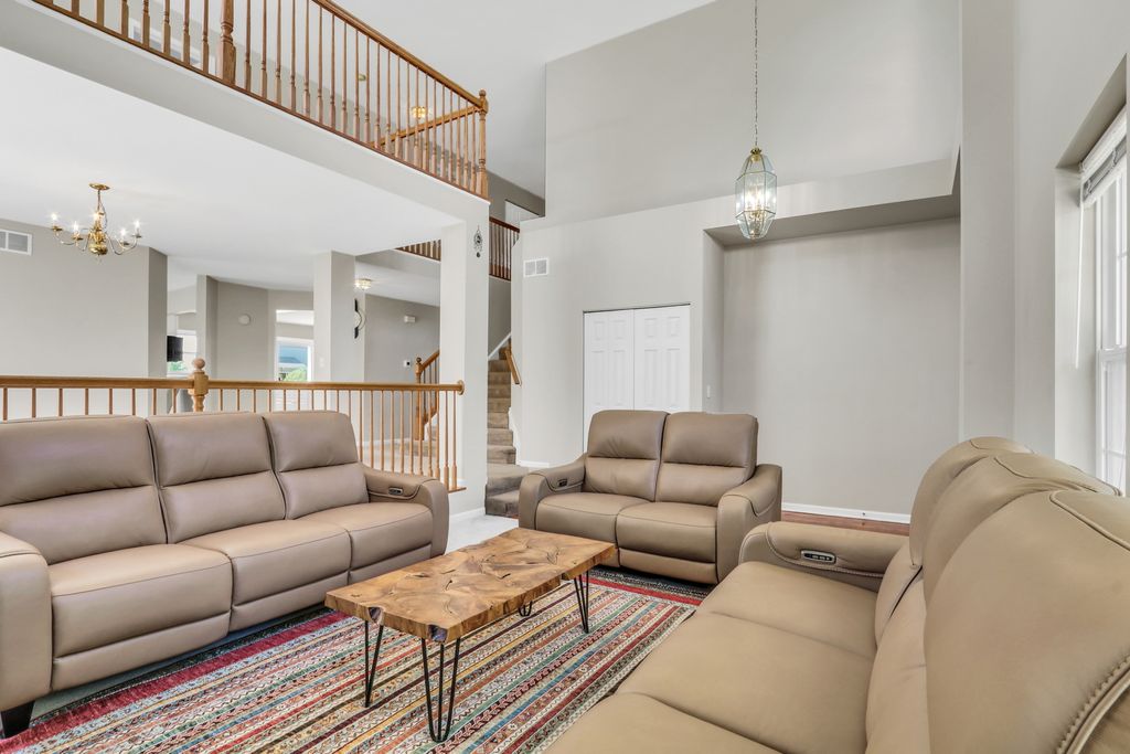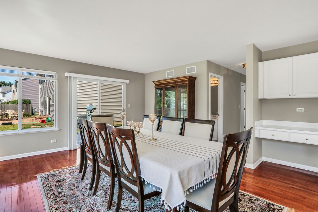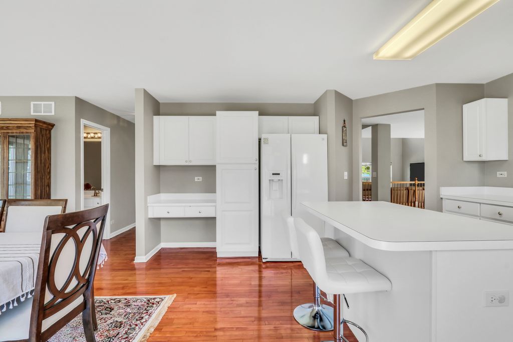 Your search ends here! This beautifully maintained home features a striking two-story foyer, sunken living room, and a formal dining room highlighted by elegant columns. The inviting family room offers a cozy fireplace and built-in media space, while the expansive kitchen boasts white cabinetry, a center island, planning desk, and a bright eating area that flows into the sunroom. Newly refinished hardwood floors add warmth and style throughout the main level. The vaulted primary suite is a true retreat with a whirlpool tub, new separate shower, dual vanities, and a walk-in closet. Upstairs, you'll find three additional bedrooms, a versatile loft, and a full hall bath. A large laundry room and a full basement with roughed-in plumbing provide added convenience and storage. Recent improvements include furnace and A/C (2023), dishwasher (2025), washer/dryer (2019), refrigerator (2015), siding (2016), and roof (2013). Freshly painted in a modern greige with crisp white trim, this home is move-in ready with timeless style. Enjoy outdoor living on the welcoming front porch with brick facade or relax on the brick paver patio. Large green yard great for entertaining with friends and family. Ideally located within walking distance to the neighborhood park and close to downtown Grayslake, schools, and the Metra station, this home offers comfort and thoughtful details throughout. Schedule a showing today!