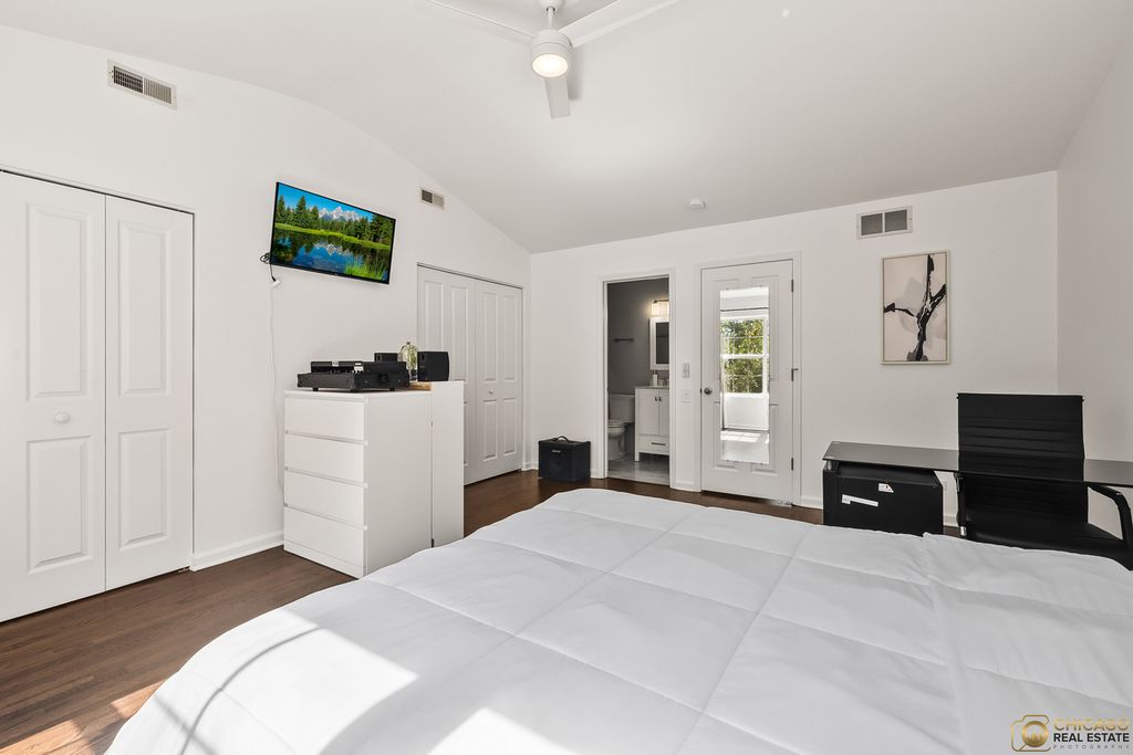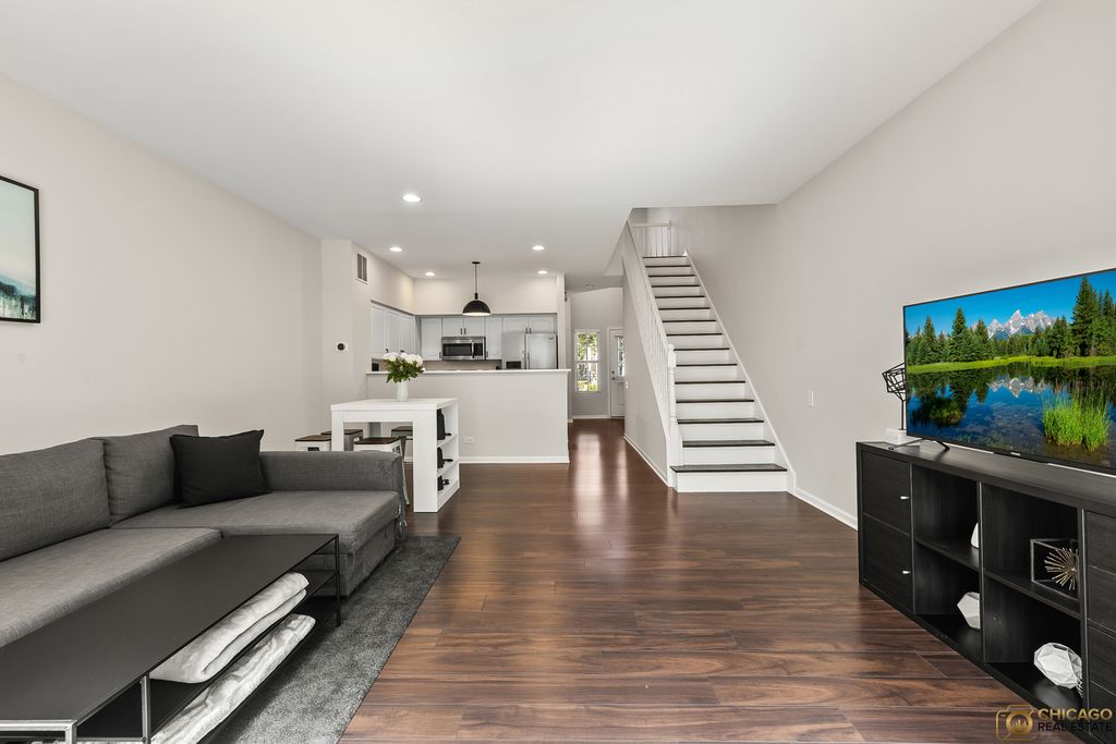 Tucked away in a quiet subdivision yet minutes from expressways, shopping, and dining, this beautifully updated 2 bed/2.1 bath townhouse is sharp as a tack, clean as a whistle, and truly move-in ready. Step inside to soaring vaulted ceilings, abundant natural light, and a modern layout designed for today's living. The kitchen shines with stainless steel appliances, refreshed countertops (2025), updated hardware and lighting (2024), and a fresh, inviting look. The main level features espresso-colored wood laminate floors, while the stairs and second level boast refinished hardwood (2024). A new patio door (2022) opens to the private deck, refinished in 2025, perfect for relaxing or entertaining. Retreat to the master suite, fully renovated in 2018 with stylish 2024 updates, while the second-floor bath offers a brand-new vanity (2025). All bathrooms feature high-end finishes, updated mirrors, and fixtures. Bedrooms are refreshed with new ceiling fans, curtain rods (2024), and door hardware (2025). Major updates include new siding (2024), furnace (2019), hot water heater (2018), garage door and opener, and new blinds (2024). This ultra-clean, turnkey home has been meticulously maintained from top to bottom-live here and make it a wonderful life.