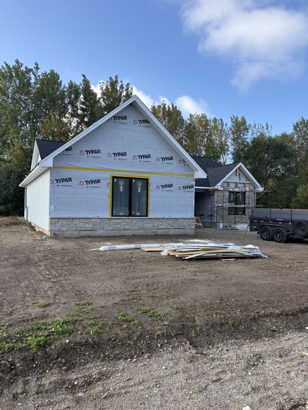 This luxury new construction modern farmhouse is being built with impeccable craftsmanship, 9 ft ceilings, and an open floor plan designed for modern living. The exterior is a showpiece with cedar accents, white Hardie board siding, stone details, and oversized Pella windows that flood the home with natural light. The heart of the home is the gourmet kitchen featuring 42-inch white cabinets, quartz countertops, an oversized accent island, under mount single bowl sink with pull-down faucet, and a spacious walk-in pantry. The kitchen flows seamlessly into the living and dining areas, highlighted by recessed can lighting, white trim, and two-panel doors throughout. The primary suite is a private retreat with a generous walk-in closet and spa-style bath offering two 42-inch vanities with multi storage drawers and sink for more counter top space. Comfort-height toilet, matching mirrors, linen closet, soaking tub with floor-mounted faucet, and an oversized walk-in shower with floor-to-ceiling tile. The second bedroom has a walk in closet. A second full bathroom includes a tub/shower combo with tile floors and tile walls to the ceiling, 42-inch vanity with matching mirror and ample storage space with sink for more countertop space. The versatile bonus room adds flexibility for family, guests, or a home office. Includes a separate laundry room with utility sink. Additional features include ample storage closets, tile flooring, a concrete driveway, oversized 3-car garage, and a large covered concrete patio perfect for outdoor living. Blending modern elegance with timeless farmhouse style, this home is the perfect combination of luxury, comfort, and functionality.