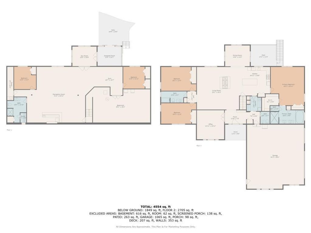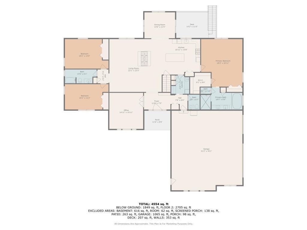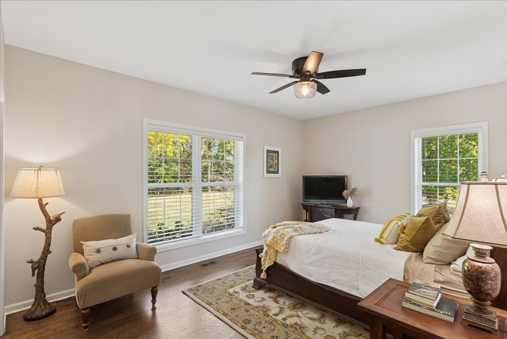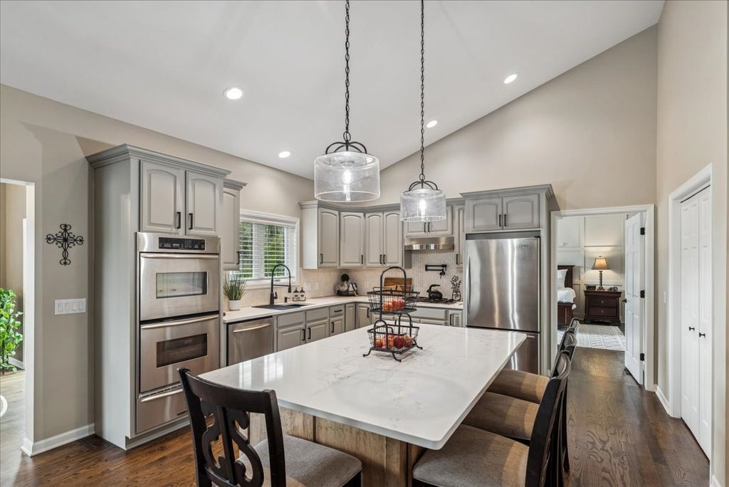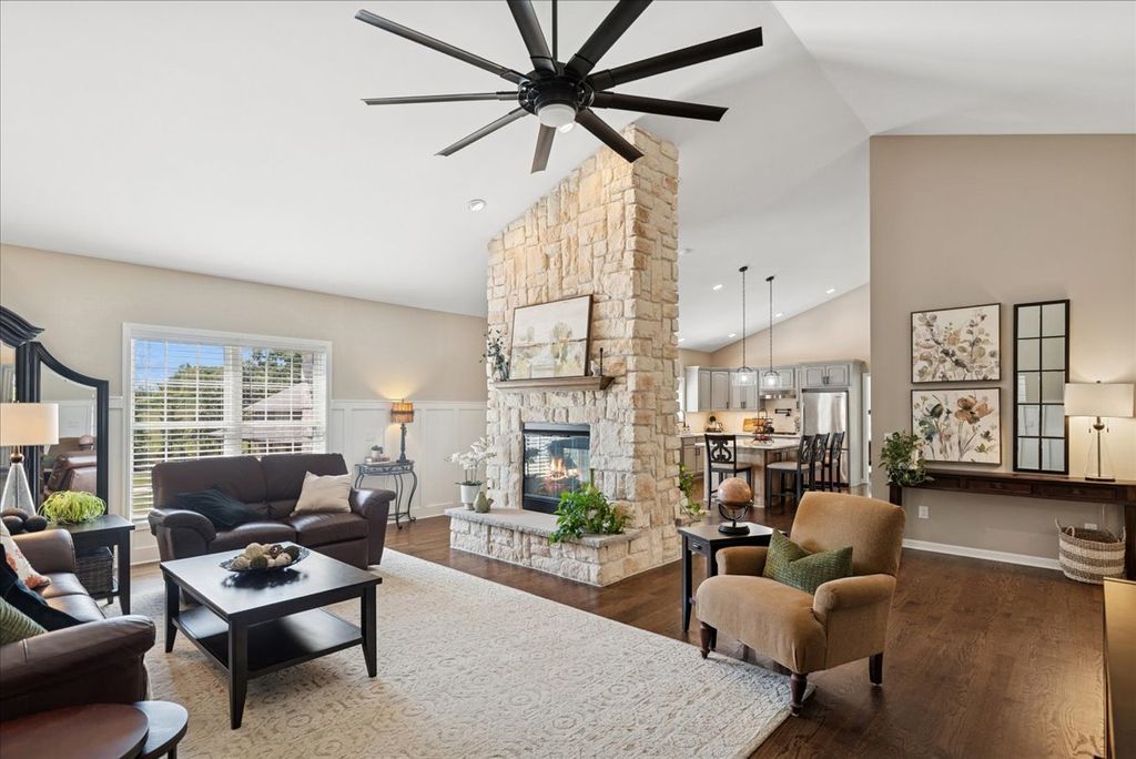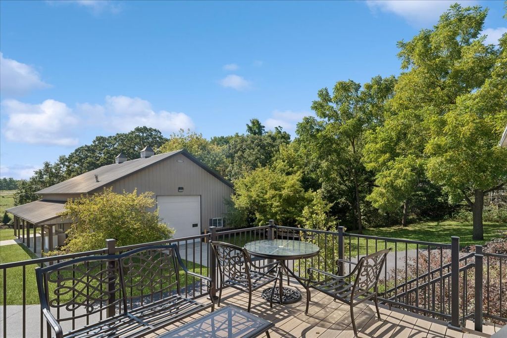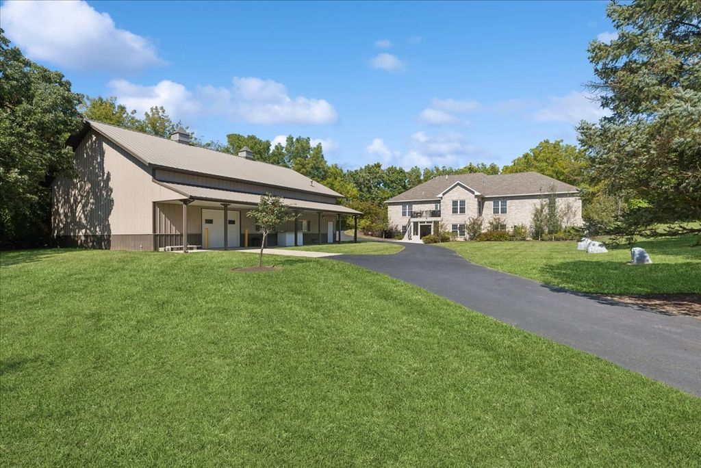 Absolutely stunning custom all brick ranch home with finished walk-out basement on 3.06 lush professionally landscaped grounds with native plantings. Home was completely remodeled in 2021 and initially inhabited 12/2021. An amazing 42x60 heated pole barn with concrete floor, 14' overhead door, mezzanine, and bath. 10 zone irrigation system, new composite deck 2022, new roof 2022, 4 season room, and stamped concrete screened in patio. Enter into the spacious foyer with custom cabinetry and porcelain flooring, professionally refinished chefs kitchen cabinets with custom maple island w/seating and quartz countertops. Shared floor 2 ceiling stone 2 sided gas fireplace between living room and kitchen. Vaulted or 9' ceilings thru out, custom mill work in family room, office, and primary bedroom, all new refinished or new hardwood flooring thru out. Open concept living with an abundance of natural light. Finished walkout basement offers a gaming area with wet bar, family room, exercise area, full bath and 3-4 person sauna, along with 2 additional bedrooms and 4 season sunroom with access to the screen patio. in 2022 a whole house back-up generator was added. A total of 5 bedrooms, 3 1/2 baths and 5744 finished sq ft of living space. 4 brick solar lighted pillars guide you through the 2 entrances and circular driveway. A truly amazing, move in ready home.