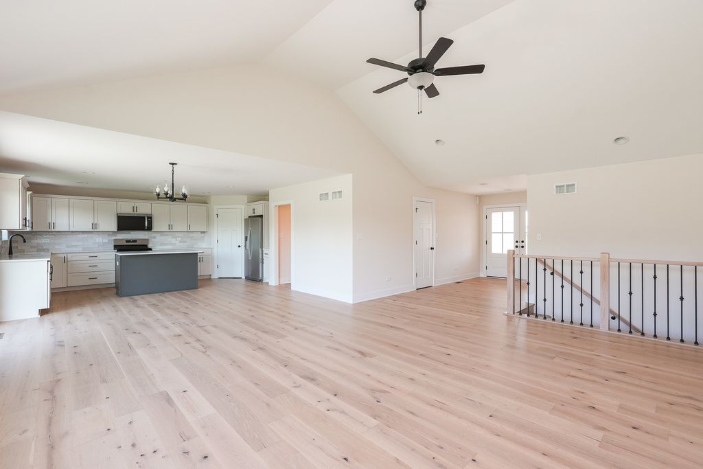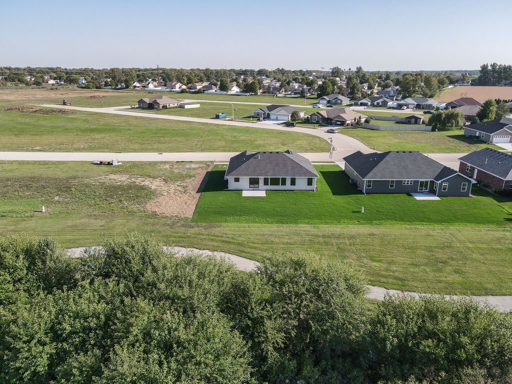Welcome to this beautifully designed ranch-style home that combines modern comfort with a serene setting. Step inside and be greeted by hardwood floors flowing through the open-concept living areas, where a soaring cathedral ceiling and abundant natural light create a warm and inviting atmosphere. The family room seamlessly connects to the kitchen and dining space, making it ideal for entertaining or relaxing with family and friends. The primary suite is a private retreat with a spacious walk-in closet and a luxurious adjoining bath featuring double sinks and a custom tile shower. Two additional bedrooms share a full bath, providing comfort and flexibility for family, guests, or a home office. An open staircase leads to the full unfinished basement, offering endless potential for future living space or storage. Enjoy nature views from the back patio, where you'll feel connected to the outdoors. The subdivision is designed for an active lifestyle, with a walking path that winds through the community and into the adjoining neighborhood-perfect for leisurely walks or bike rides. A nearby park and pond add to the charm, offering opportunities for play, relaxation, and even fishing. This home is a true retreat, blending convenience, style, and the beauty of nature. Home will be completed and ready to close in 30 days. Interior pictures will be taken next week. Agent related to seller.
