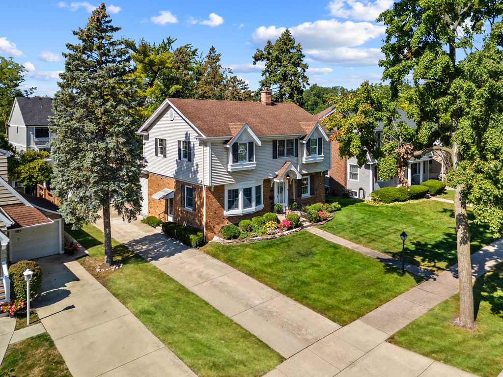 Welcome to new your move-in-ready home in the heart of Elmhurst! This beautifully updated residence offers the perfect blend of charm, comfort, and modern convenience. You will be impressed by the gleaming hardwood floors throughout the main level and the bright, open kitchen featuring white cabinetry, quartz countertops, stainless steel appliances. A built-in decorative cabinet, and a breakfast bar for two add to the dining room space. You will find generously sized bedrooms, canned lighting, and a 2nd floor wide hallway adds to the airy feel of the home. The spacious master suite is a true retreat, complete with a tray ceiling, dual-sink vanity and whirlpool tub. Enjoy year-round comfort with zoned heating and cooling with smart thermostats. The finished basement offers abundant storage, a dedicated laundry room, and two flexible spaces that could be used for a media room, home gym, office, or playroom. Step outside through the sliding glass doors to a Trek deck, and brick paver area-perfect for entertaining. Additional highlights include a new water heater (2025), washer/dryer (2021), remodeled bathrooms (2021), gutter guards, shed, concrete driveway, and a full attic for even more storage. Located just three houses from the Prairie Path and near the Metra Train and downtown Elmhurst. This home is also two short blocks from award-winning Blue Ribbon Jefferson Elementary school and also near highly ranked Sandburg School and York Community High School. With timeless charm and thoughtful updates throughout, this Elmhurst gem won't last long!
