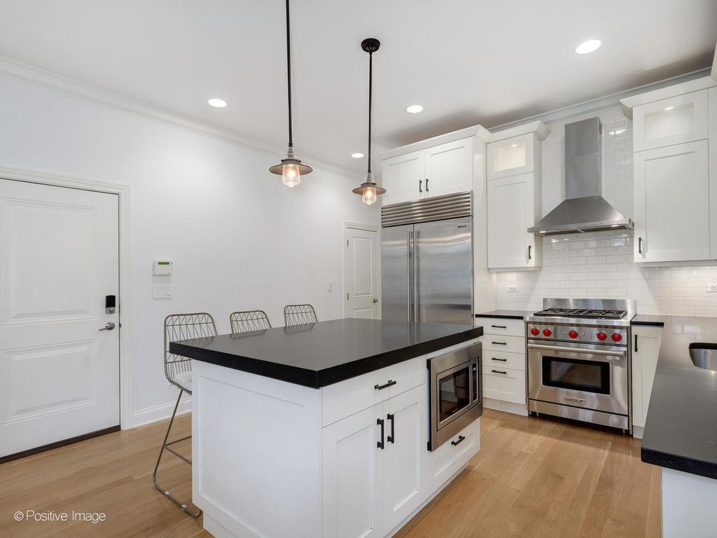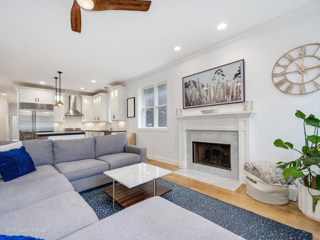 Unbeatable Lincoln Park location for this stunning 2 bed, 2 bath condo in the heart of it all! Step inside to a sunny open floor plan with soaring ceilings, hardwood floors throughout, and a perfect home office nook. The spacious living and dining area is anchored by a cozy gas fireplace and drenched in gorgeous western light from oversized windows. The chef's kitchen is designed with high-end appliances-SubZero fridge, Bosch dishwasher, Wolf range and a large eat-in island perfect for gathering. The primary suite offers a spa-inspired ensuite featuring heated floors, marble countertops, dual vanity, a walk-in steam shower, and a walk-in closet. A beautifully finished full hall bath with marble details, ample storage, and stacked in-unit laundry complete the home. Parking in the detached garage and an additional storage unit in the basement are included. All this just steps from Trader Joe's, Target, and the endless shops and restaurants along Clark Street!