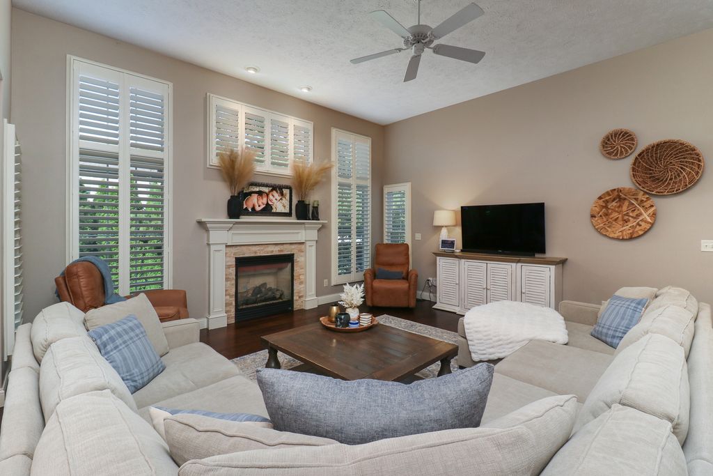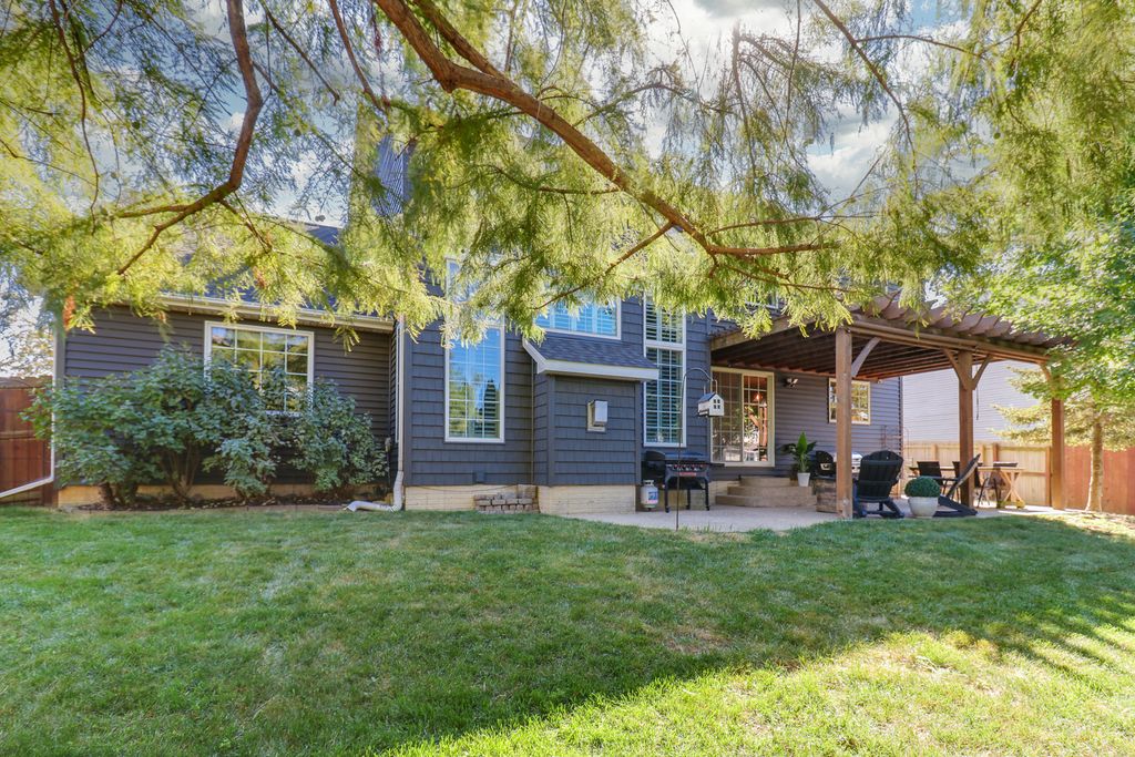 Must see! Check out this stunning 5 bedroom, 3.5 bedroom home with finished basement in Wintergreen subdivision with so many wonderful updates! Roof (2024), HVAC system (2024), Whole House re-sided (2023), Garage doors (2020). Open concept floor plan with a first floor primary bedroom and on-suite bathroom, Spacious family room with 11 ft ceilings, gas fireplace and plantation shutters. Updated kitchen (2015) to include new cabinets, island, countertops and backsplash. Refrigerator and Microwave (2021) Dishwasher and Stove (2019). Continuous first floor engineered wood flooring (2015) Laundry room updates- wood accent wall, sliding barn style door addition and newer washer/dryer (2024). Formal dinning room in front of home. Upstairs find spacious 3 bedrooms and 1 full bath with double vanity and tub/shower combo. The finished lower level features a bedroom with a full bathroom, family room with built-in desks and wine Cabinet, - lots of storage! and a unfinished bonus room 13x13. Private fenced backyard with lovely patio and pergola that were added in (2014).