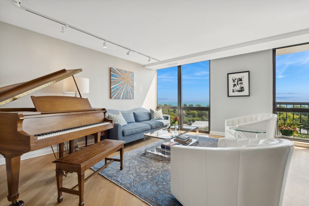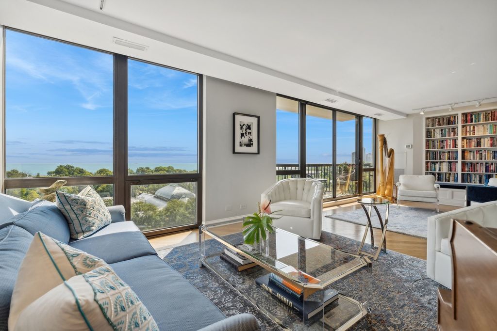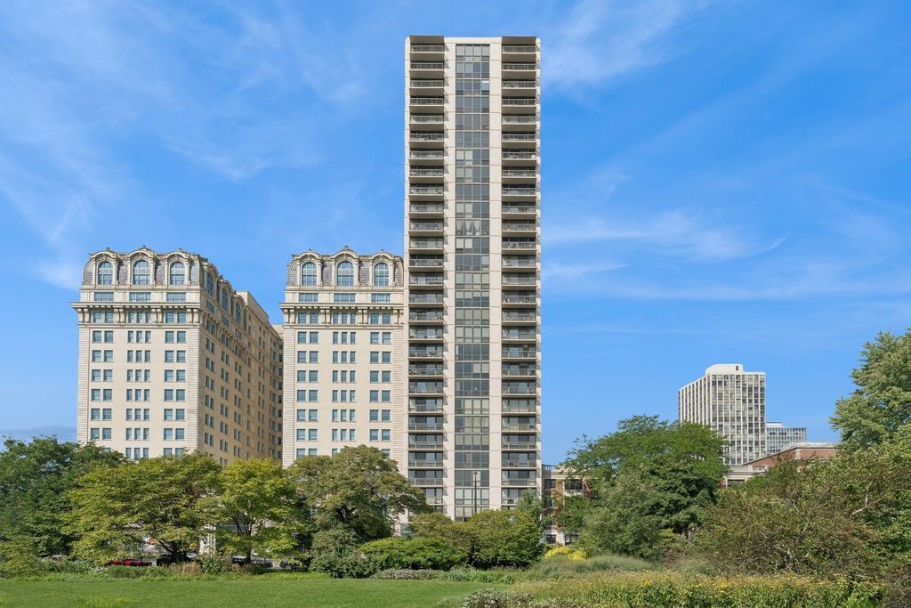 Wake up to the sounds of lions roaring and experience luxury living in this rarely available stunning extra wide duplex at the Conservatory, offering unobstructed views of Lake Michigan, Lincoln Park and the zoo from all main rooms and two balconies. The expansive 27' wide living room features beautiful hardwood floors, custom built-ins, creates a perfect space for relaxing or entertaining. A formal dining room with built-in wine storage provides an elegant space for gatherings. Gorgeous contemporary Poggenpohl gourmet eat-in- kitchen features top of the line appliances, large island, ample storage and built-in desk. A third/guest bedroom and a sleek, updated full bath complete the main level. The beautifully renovated primary suite offers a luxurious retreat, featuring custom window treatments, hardwood floors, and a stunning newer spa-like bathroom and dressing area. Enjoy glorious sunrises and your morning coffee on one of the two east-facing balconies. This exceptional home includes two parking spaces in the garage. Situated in an unbeatable location across the street from the zoo, park and lake. Steps from famous restaurants, shopping and easy access to public transportation.