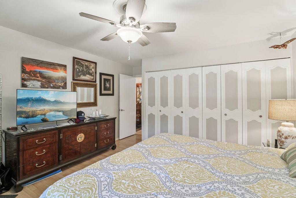 Highly desirable, turn-key property featuring an open concept floor plan. Recent updates include fresh paint, a new roof, and a brand-new air conditioning system. The property boasts a clean and updated interior, a bright living room with a spacious balcony, and a large bedroom with ample closet space. The kitchen features updated IKEA cabinets (approximately 4 years old), new hardware, all-new black appliances, and under-cabinet lighting installed in December 2024. Original windows and patio doors have been replaced with energy-efficient doors and windows in April 2025. Additional amenities include a separate storage unit and two parking permits. The property is located in a quiet building and unit, with desirable neighbors.