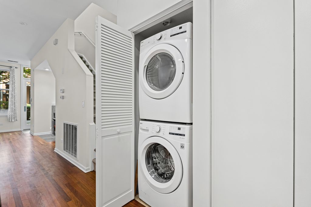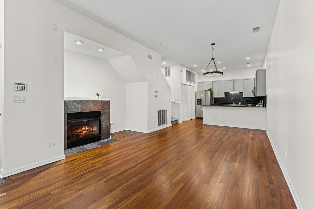 Beautiful 2 Bed / 2 Bath Townhome with Private Rooftop | River North. Welcome to this beautifully updated and spacious townhome located in the heart of River North. The open-concept main level features a modern kitchen with stainless steel appliances, newly resurfaced hardwood floors, and a bright living area with oversized windows that flood the space with natural light. Enjoy cooler evenings in front of your beautiful gas fireplace. Upstairs, you'll find two bedrooms and two full bathrooms, including a comfortable primary suite. Both bedrooms can accommodate a king size bed. Step out onto your private rooftop Trex deck-ideal for relaxing or entertaining. Recent Updates Include: - Entire home freshly repainted - Refinished hardwood flooring - Refurbished kitchen cabinets - Brand-new backsplash, faucet and disposal - Newly carpeted stairs and second floor - New Trex rooftop deck (2024) Additional Features: - In-unit laundry - Kitchen pantry - Ample closet space - Dedicated underground/enclosed parking space and storage. Located just blocks from River North's top dining, shopping, and entertainment options. A fantastic location!
