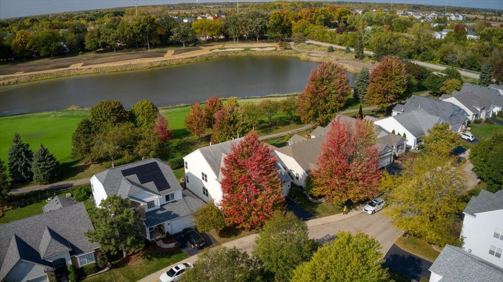 From your deck, enjoy year-round views of the 4th hole on the Championship Golf Course at Orchard Valley. Rarely available home in this highly sought-after golf course community. This impressive property offers 3 bedrooms, 2.1 bathrooms, convenient first-floor laundry, and a finished basement, providing ample living and storage space. Upon entering, you are greeted by a dramatic two-story entry that leads to a formal living and dining room, perfect for entertaining. The abundance of windows throughout the home fills every space with natural light, creating a bright and inviting atmosphere. This open floor plan provides plenty of versatile space, with the beautifully updated kitchen seamlessly opening to the family room with a cozy double sided fireplace. Both of these main living areas offer spectacular views of the Orchard Valley's 18-Hole Championship Course which is currently undergoing a major renovation with plans to reopen for the 2026 golf season. The kitchen itself is a highlight, featuring elegant quartz countertops, modern stainless steel appliances, and a custom backsplash. Upstairs, you will find the spacious primary suite, complete with an attached bath for ultimate comfort and privacy. The other two bedrooms are generously sized, offering a serene retreat for family or guests. Additionally, the open and airy loft provides flexible space that can be used as desired, whether for an office, den, or easily converted into a 4th bedroom if needed. This desirable property is conveniently located, offering easy access to a variety of shopping and dining options, and is just moments away from I-88, making commuting simple. Given its prime location, golf course views, and extensive features, we anticipate this home will not be on the market for long. Schedule your showing today to experience all that this remarkable home has to offer and make it yours.
