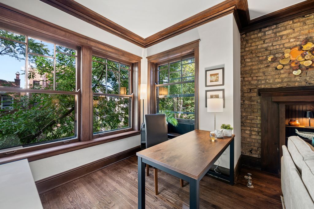 Welcome to this handsome and beautifully maintained vintage condo in Chicago's vibrant Edgewater neighborhood. This impeccable home is a comfortable hybrid of timeless character and modern comfort. Step inside to discover original hardwood floors, beautifully preserved millwork, and a charming gas fireplace that elegantly anchors the living space. Classic three-over-one Chicago-style windows and a stunning stained glass window fill the home with natural light, warmth and historic character. A bright sunroom offers the perfect spot to relax, or work from home while the sunny and cheerful breakfast room creates an inviting space to start your day. Freshly painted throughout and meticulously cared for, this residence is truly move-in ready. Washer & dryer hookups are well placed to create a user-friendly utility and storage closet with plenty of shelving. The primary bedroom closet has recently been outfitted with an organized closet system and lighting. The rear garden provides lush and relaxing respite. Close to public transportation, lakefront, shopping, dining and entertainment - all that Edgewater and Andersonville have to offer. Additional storage in basement. Rarely does a home of this quality and historic charm come to market-don't miss the opportunity to make it yours.