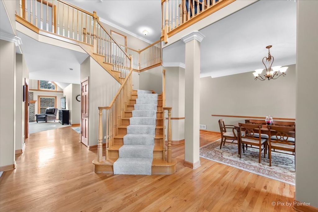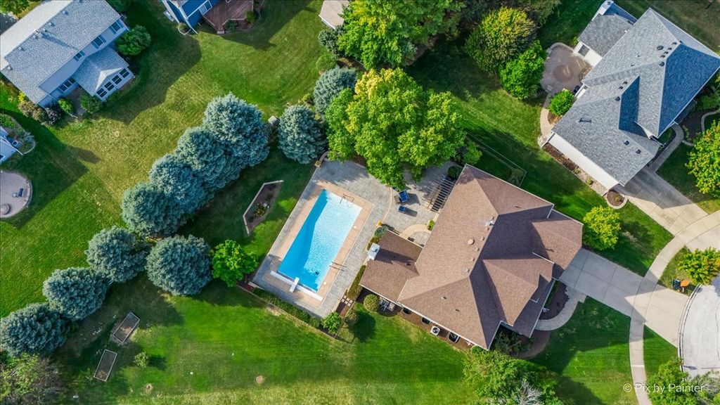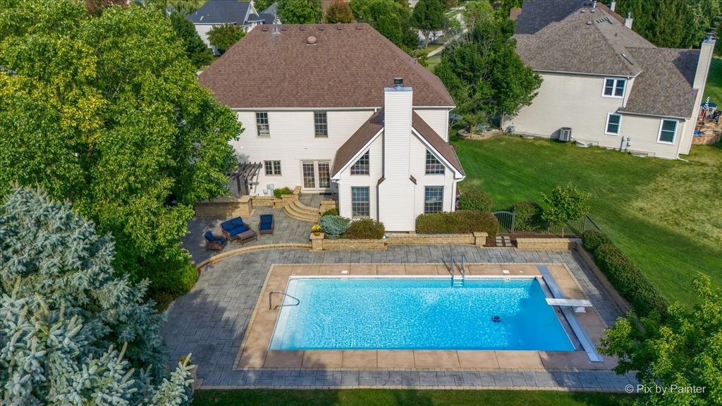 Welcome to this stunning home in Moose Lake Estates! Situated on one of the best lots (.4 acres) in the area it offers complete privacy and easy access to everything! Beautifully maintained, the home features brand new carpet throughout, newer paint (2021). Step into the 2-story entry with gorgeous windows and solid hardwood floors. There is a formal dining room and formal living room, perfect rooms for entertaining! There is a 1st floor office with glass french doors that can be closed for privacy or open to the light and bright kitchen. This gorgeous kitchen features the most beautiful butlers pantry with glass front cabinets, granite throughout the kitchen, SS appliances (dishwasher new in 2020) which are all included. There is a 1st floor laundry room, very conveniently located off of the 3-car garage. The back family room has custom windows, accent lighting and a fantastic masonry brick fireplace with gas start. Upstairs you will find 4 generous bedrooms plus a large loft. The master suite is oversized and has a large bathroom with 2 separate vanities, a Jacuzzi tub and a separate shower. Also, a generous walk-in closet with organizers. But wait until you step out onto the brick paver patio into this incredible yard with a fabulous in-ground saltwater pool (18x38) with a heater and an automatic retractable cover for safety and peace of mind. This pool is incredibly easy to maintain! There is a pergola with a built-in bar area, plenty of patio space for multiple entertaining areas or quiet spots, and a built-in fire pit on the patio. The yard is .4 acres and fully fenced-in; it has a sprinkler system and offers abundant perennials and mature trees. The home also features newer central air (2022), roof, gutters and downspouts. (2018). A full basement completes the picture, and is waiting for you to bring your ideas for finishing. 5 minutes to I-88, great shops and excellent restaurants. Overall, it's a 10!