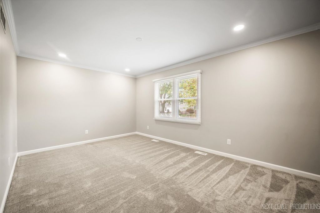 Welcome to absolute perfection! This fully remodeled home exudes sophistication at every turn, beginning with a striking new front door and wood staircase that set the tone for the exquisite details and high end finishes throughout. The expansive living room boasts crown molding and oversized windows that flood the space with natural light, while the gourmet eat-in kitchen impresses with custom cabinetry/hardware, featuring soft close doors and drawers, pull out shelving, under-cabinet lighting, quartz countertops, marble backsplash, custom black sink, pot-filler, premium Forno Cafe white appliances, and a seamless transition through sliding glass doors with built-in blinds to a Trex deck designed for outdoor living! The luxurious primary suite showcases crown molding, dual wall closets with custom doors and access to a spa-inspired bath with a wood vanity, vessel sink, and shower/tub combination. Bedroom two with custom closet doors too! The lower level continues with a large sunlit family room, two generously sized bedrooms with custom closet doors, and a stunning designer bath featuring a marble-topped vanity and an oversized walk-in shower with wood & slate accents. A state-of-the-art laundry room offers custom cabinetry, epoxy flooring, utility sink, and stacked washer/dryer, while the heated two-car attached garage with epoxy flooring and built-in storage enhances both style and function. With all new HVAC, appliances, plumbing, lighting, custom blinds, impeccable landscaping with irrigation system, and a coveted location close to all amenities, this home delivers the perfect blend of modern luxury and timeless appeal. No detail was overlooked in this meticulous renovation. See list of extensive improvements in additional documents.