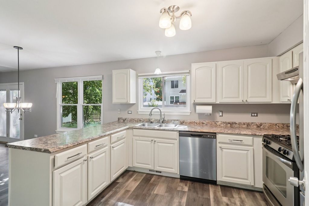 Welcome to this charming 3-bedroom, 1.5-bath half-duplex in Grayslake! Step into a sun-filled living room with updated flooring. The modern kitchen features stunning countertops and stainless steel appliances, flowing into the cozy family room with a warm fireplace. A convenient first-floor laundry adds to the home's functionality. Enjoy new carpet on the stairs and second level, where all three bedrooms are located. Other upgrades include newer main-level flooring (3yrs), fresh paint in many rooms, a new dishwasher, and an added bedroom chandelier. Enjoy a fenced backyard in a desirable neighborhood with parks, bike paths, pond, tennis and basketball courts. Close to College of Lake County, Rollins Savanna Forest Preserve, and shopping. Located in the sought-after Grayslake Central High School district! Schedule your showing today!
