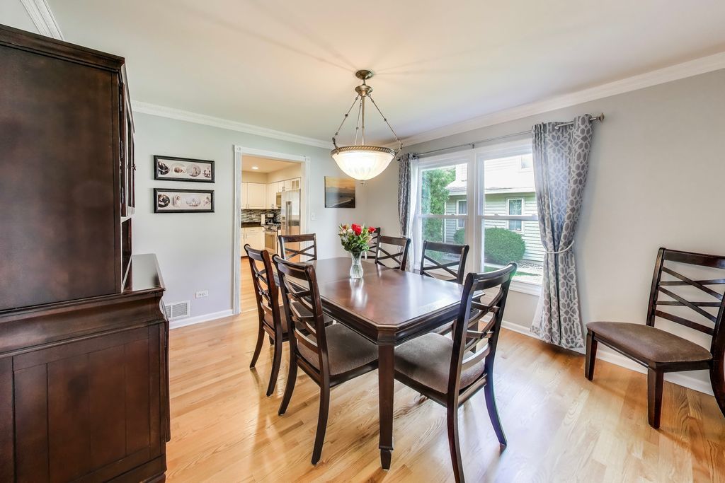 Welcome to 2608 North Wilshire Lane in the charming community of Arlington Heights, IL. Nestled on a serene corner lot, this inviting 4-bedroom, 2.5-bathroom home spans a generous 2,393 square feet, with a total lot size of 8,751 square feet. It offers a perfect blend of comfort and style, designed for those who appreciate both entertaining and relaxation. Step inside to discover hardwood floors throughout the main level complemented by recessed lighting and elegant chandeliers. The heart of the home is the beautifully renovated kitchen, featuring tons of cabinet space, wine storage, and stainless steel appliances, including a gas range and a convenient breakfast bar. This space flows seamlessly into the family room, making it ideal for gatherings. The eat-in kitchen area and breakfast nook provide casual dining options with a view of the private backyard. The expansive master bedroom is a true retreat, complete with a walk-in closet and a luxurious ensuite bathroom featuring a separate shower and soaking tub. Three additional spacious bedrooms offer ample space for family or guests. Outdoor enthusiasts will adore the backyard oasis, offering complete privacy and a perfect backdrop for al fresco dining or simply unwinding. The private patio and yard back up to a tranquil meadow, adding to the sense of seclusion. Plus, enjoy the versatility of sunroom that allows you to take in the beauty of the outdoors in comfort. Additional amenities include a formal dining room, a cozy fireplace, and a full finished basement with a crawl space for extra storage. The central AC and gas heat ensure year-round comfort, while the attached two-car garage and storage shed offer practicality. Discover your new home at 2608 North Wilshire Lane, where every detail is designed to cater to your lifestyle needs.