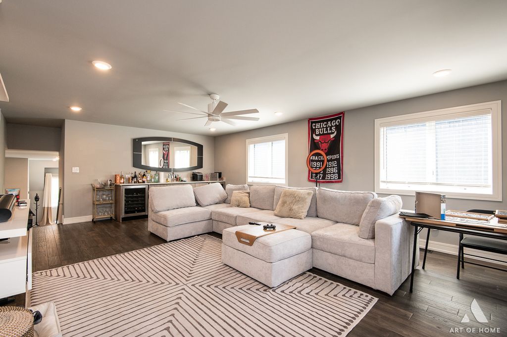 Welcome to this one-of-a-kind modern condominium featuring a sophisticated design and sweeping views of the iconic downtown Chicago skyline. Step inside to discover an open-concept living room and kitchen, thoughtfully finished with high end upgrades. The kitchen is a chef's dream, showcasing pristine white quartz countertops, a harmonious blend of white and light oak cabinetry, and top-of-the-line stainless steel appliances. Just beyond the kitchen, the spacious living area is bathed in natural light from double-pane glass sliding doors that lead to a private balcony-perfect for relaxing summer evenings. Upstairs, a generously sized family room awaits, ideal for entertaining with a built-in bar and wine cooler. Step outside to a large private terrace, perfect for al fresco dining and summer cookouts with ample space for outdoor furniture. The luxurious primary suite easily accommodates a king-size bed and features a custom walk-in closet and spa-inspired en-suite bath. Enjoy a double vanity wrapped in white quartz, a large walk-in shower with tempered glass doors, and an elegant rain shower head for a true retreat experience. Two additional bedrooms offer beautiful wood flooring, reach-in closets, and share a well-appointed bathroom with a soaking tub and rain shower. Additional features include a Nest thermostat, in-unit laundry, garage parking space (Assigned Limited Common Element), bike space, and easy street parking for additional cars and visitors. Secure gated building with intercom. Prime location with close proximity to the Dan Ryan Expressway (I-90/94), Green and Red Line stations, McCormick Place, Soldier Field, Field Museum, White Sox Stadium, Mariano's, Whole Foods, LA Fitness, Starbucks, Chicago's Home of Chicken & Waffles, Truth Italian Restaurant, and more.