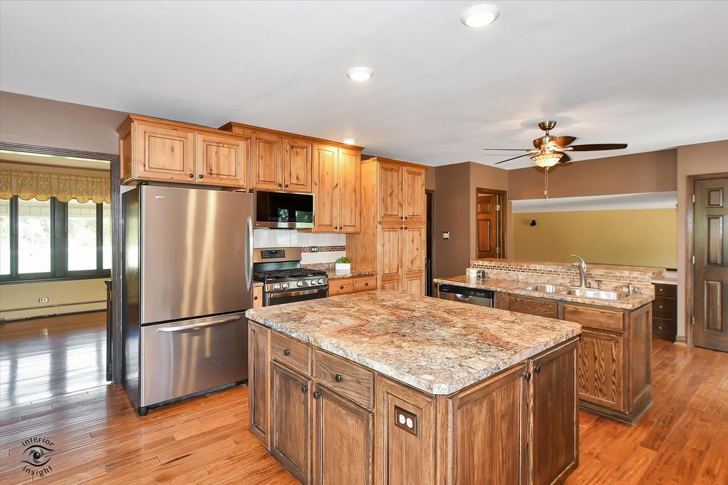 Welcome to Orland Park! This remarkable home sits on a beautiful 2.5 ACRE PARCEL across the street from forest preserve land. Quiet and serene, it truly feels like you're on vacation! The main home features 4 bedrooms, 3 full and 2 half baths. Beautiful 6 panel doors and stunning wood features throughout. Main floor laundry & 2 car attached heated garage. Beautiful eat-in kitchen updated roughly 12 years ago with alder cabinetry, 2 pantries, stainless steel appliances, a breakfast bar, large island and space for table seating. Off the kitchen is a massive 3 tier deck with pergola. The primary suite? A true oasis with 14' vaulted ceilings, his and hers walk-in closets, a jaw dropping floor to ceiling gas fireplace and a remodeled primary bath complete with dual vanity, standup shower and jetted tub. But that's not all. This property features a true, RELATED LIVING APARTMENT addition off the main house. 1 bed, 1 full bath, full kitchen, living room, dining area, private patio, laundry and attached garage. The back of the property features 7 fruit trees, a 30 x 30 former 2 story barn turned heated garage with 220 power + loft and a shed. House, barn & shed roofs are new in 2024. Main house exterior and deck painted in July 2025. Entire house electric was updated roughly 15 years ago when central air was added to the home. DO NOT LET THIS ONE PASS BY!